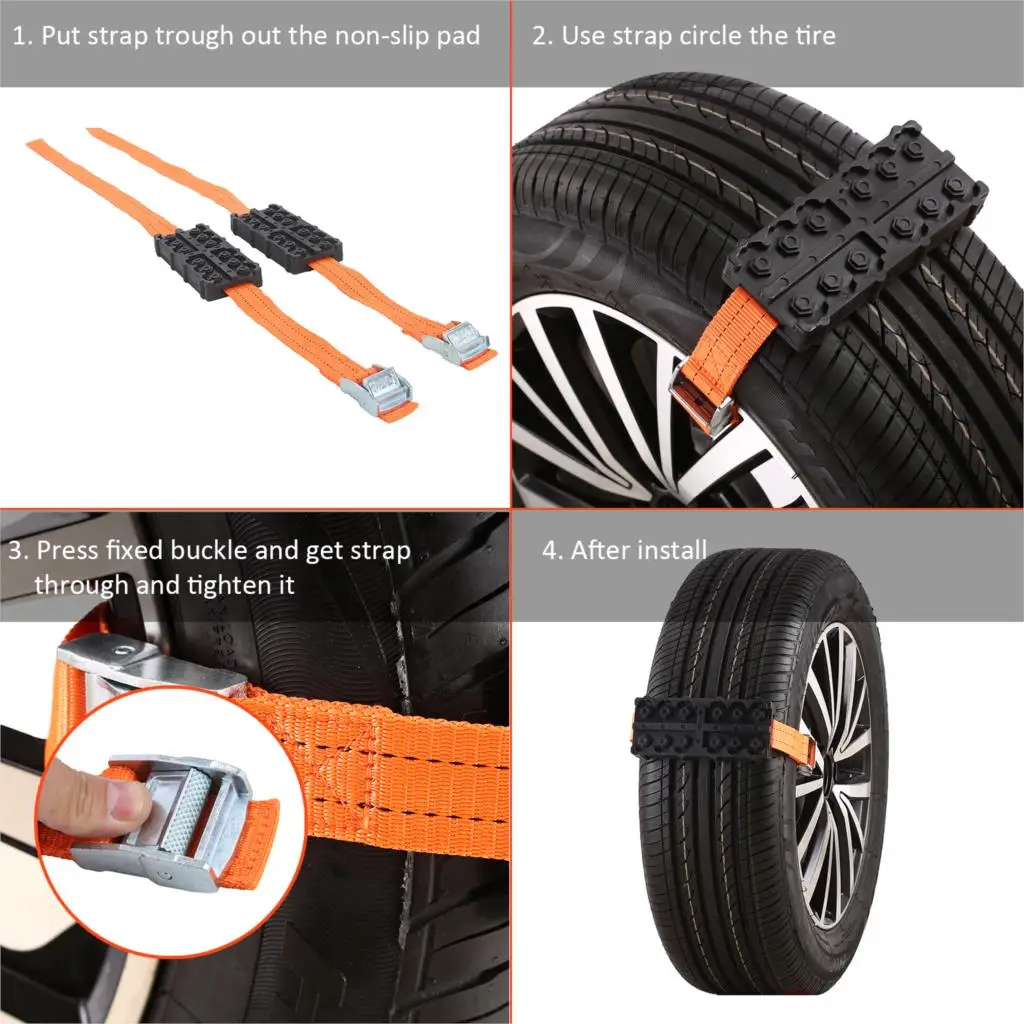 Легкая установка и портативность-с обновлением увеличенной пряжкой из сплава и ремешком высокой прочности, кооперат со средним распределением нескользящих частиц в противоскользящих накладках, идеально подходит tir держать все колодки на месте. С тканевой сумкой для удобного хранения, портативные продукты вы можете положить в любой угол автомобиля.