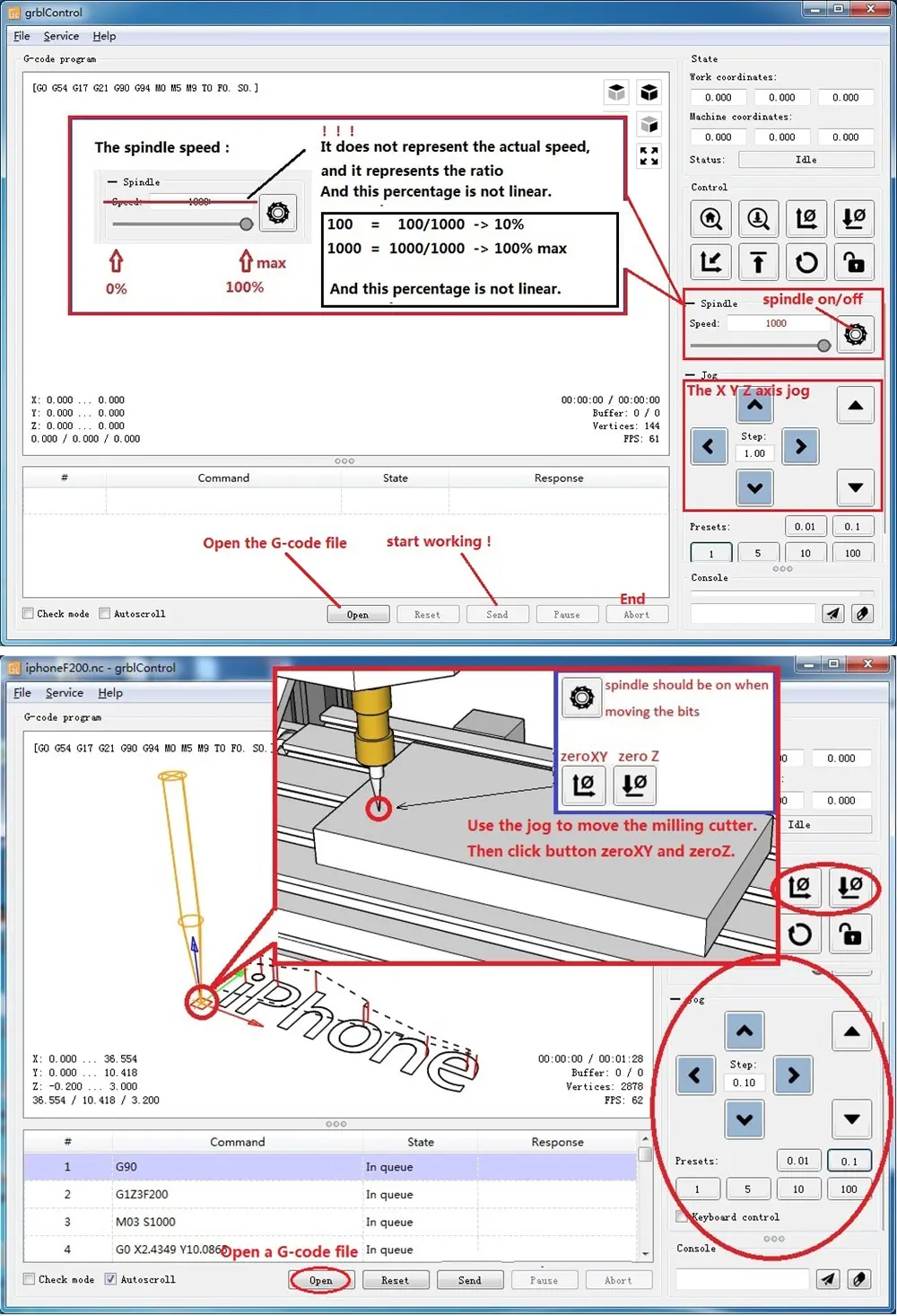 The main two advantages of offline controller : 1, Do not need to connect the computer. 2, Do not need to download files. Manually adjust X, Y, Z axis location as engraving starting point, manually open or close spindle, manually open or close cooling fan.