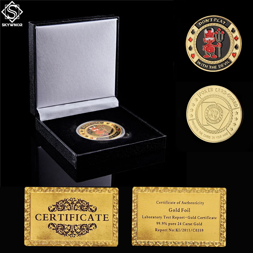 Золотая карточка для покера, покерный чип, Не играйте с дьяволом, коллекция металлических монет для казино, роскошная защита коробки