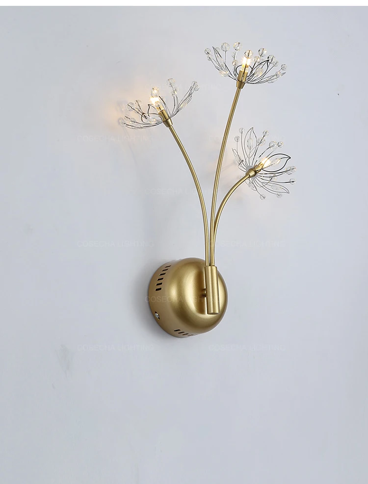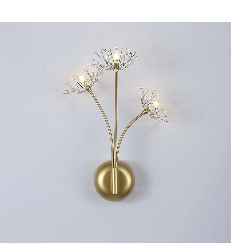 Хрустальные Настенные светильники скандинавский Золотой прикроватный настенный светильник s Роскошный Лофт прикроватный Настенный бра японский арт деко цветок Одуванчик настенный светильник