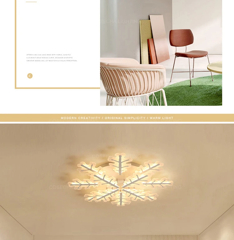 Потолочный светильник в виде снежинки, современный светодиодный потолочный светильник белого цвета для спальни, лофт, скандинавские лампы, уникальный дизайн, для детей, для девочек