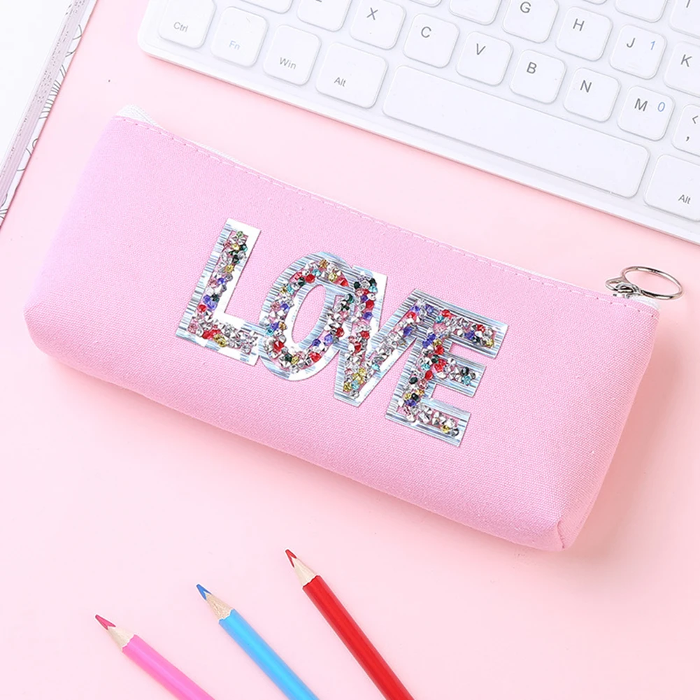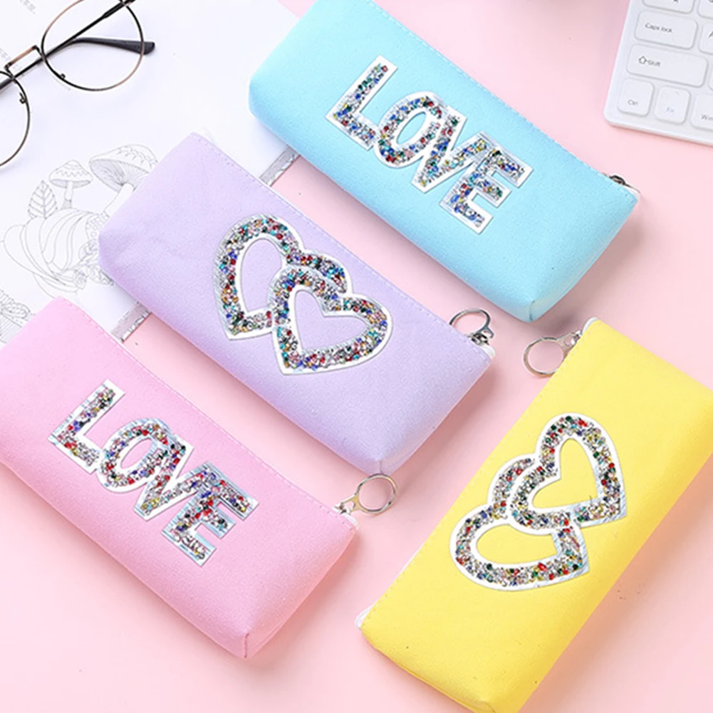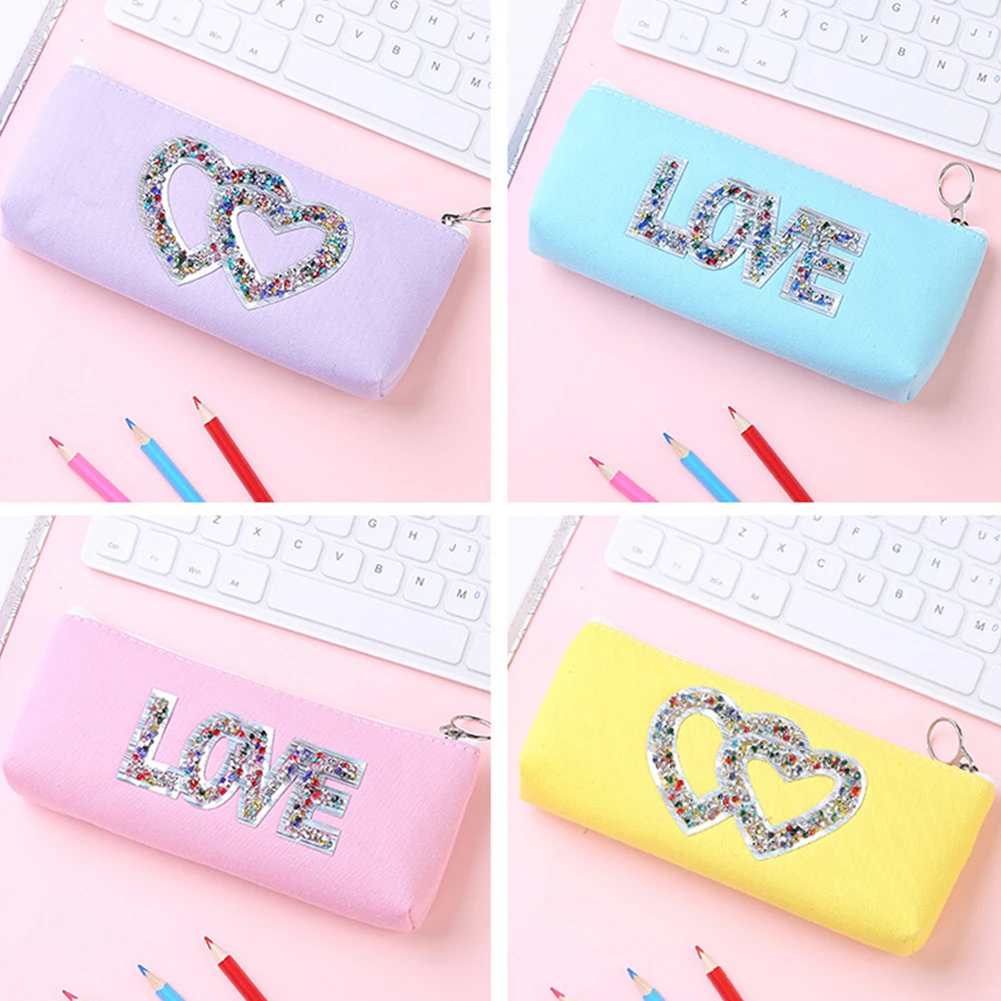 Блестящие Блестки Стразы Лазерная Холст Карандаш Чехол канцелярский чехол для хранения, на молнии