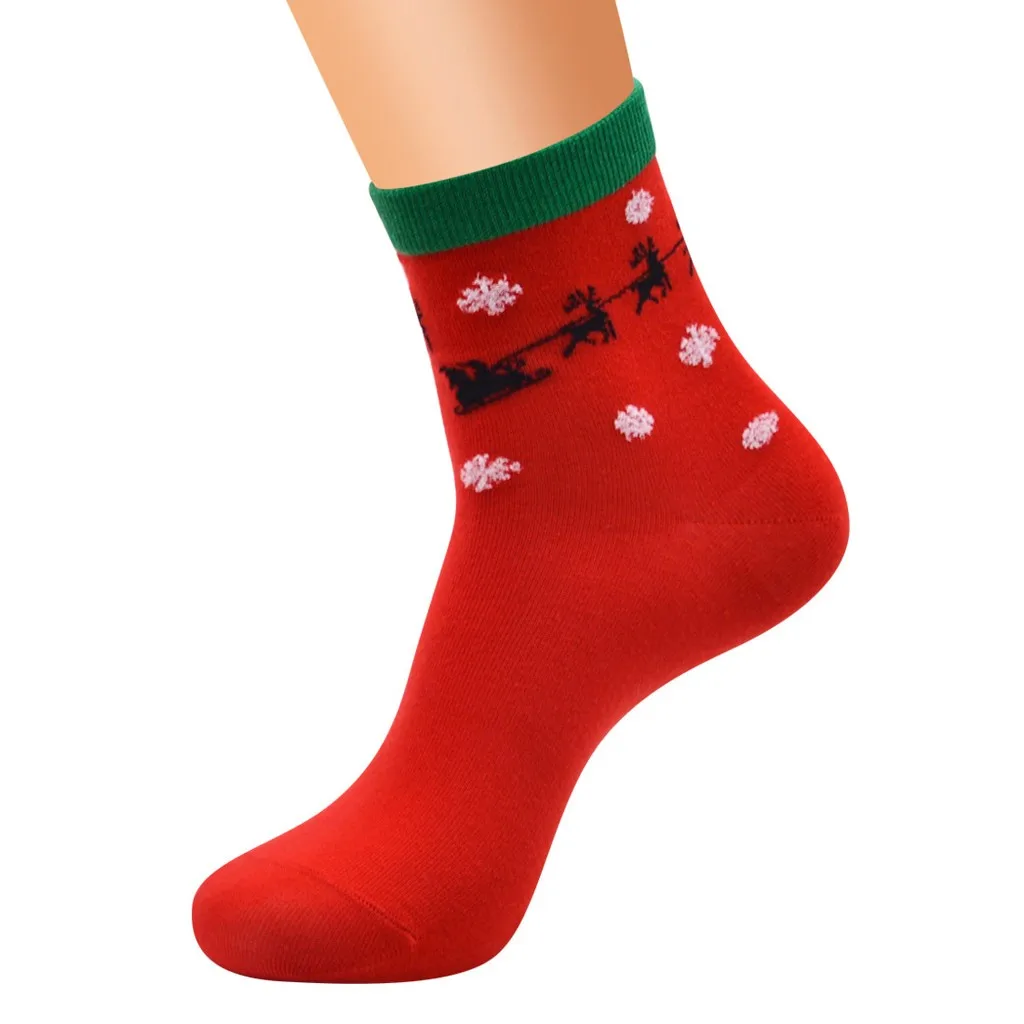 Женские рождественские красные хлопковые толстые нескользящие носки-тапочки с принтом ковровые носки