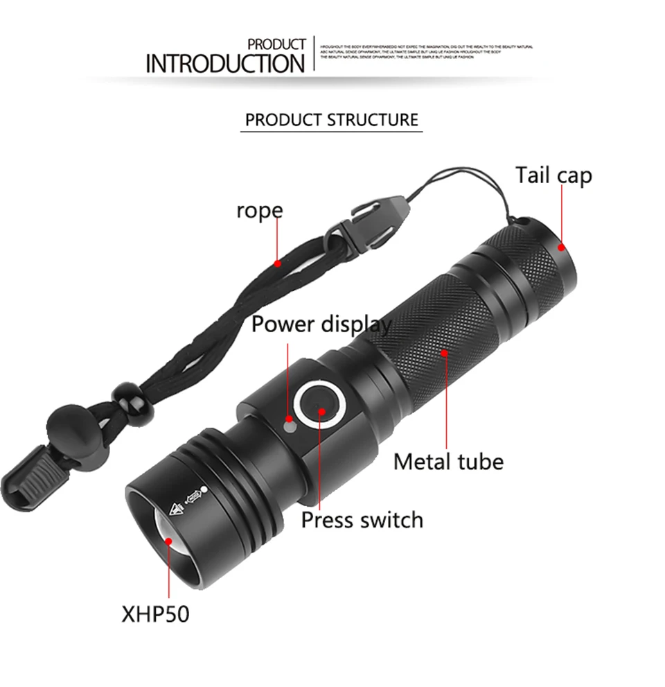 Бренд: Litwod Модель: CH1474 Светильник источник: XHP50 Цвет внешнего вида: серебристый, серый 5-скоростной режим: 100%-70%-вспышка SOS Размер: 130 мм × 35 мм × 25 мм Питание: 1 аккумулятор 18650 Время освещения: аккумулятор 18650, 10-20 часов Способ зарядки: Micro USB, Прямая зарядка Вход: 5 В Выход: 4,2 V ( powerbank функция) Диапазон: от 200 до 500 метров Зум: зум-объектив (увеличение/уменьшение Зума) Материал: авиационный алюминий, материал: T6063-T6 Использование: семья, охота, наблюдение, строительство, ходьба, техническое обслуживание, поиск и спасение