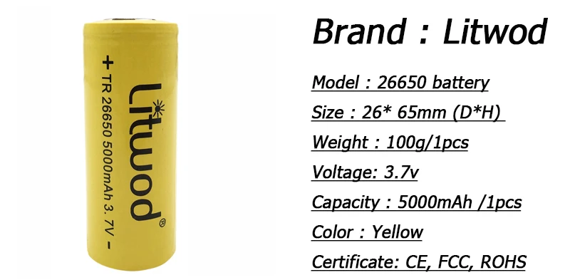 1. Название бренда: LitwodПосылка включает в себя: Вариант A: 1 * Фонарик (YC07)(Примечание: аккумулятор и зарядное устройство в комплект не входят) Вариант B: 1 * Фонарик (YC07) + 1*26650 Батарея + 1 зарядное устройство переменного тока Вариант C: 1 * Фонарик (YC07) + 1*26650 Батарея +1 * Зарядное устройство переменного тока + 1 * Автомобильное зарядное устройство + 1 * USB зарядное устройство Вариант D: 1 * Фонарик (YC07) + 1*26650 Батарея +1 * Зарядное устройство переменного тока + 1 * Автомобильное зарядное устройство + 1 * Зарядное устройство USB + 1 * коробка Вариант E:1 * Фонарик (1474)(Примечание: аккумулятор и зарядное устройство в комплект не входят) Вариант F: 1 * Фонарик (1474) + 1 *18650 Батарея + 1 зарядное устройство переменного тока Вариант G: 1 * Фонарик (1474) + 1*18650Батарея + 1 * Зарядное устройство переменного тока + 1 * Автомобильное зарядное устройство + 1 * USB зарядное устройство Вариант H: 1 * Фонарик (1474) + 1*18650Батарея + 1 * Зарядное устройство переменного тока + 1 * Автомобильное зарядное устройство + 1 * Зарядное устройство USB + 1 * коробка Мощный фонарик в двух стилях YC07 ( XHP70.2) и 1474 ( XHP50) с использованием батареи YC07(26650)/1474(18650)
