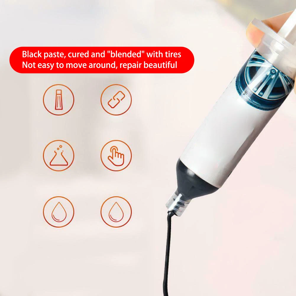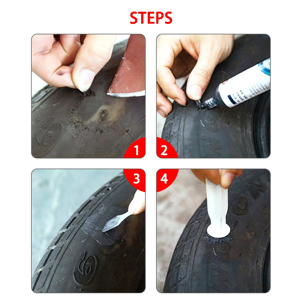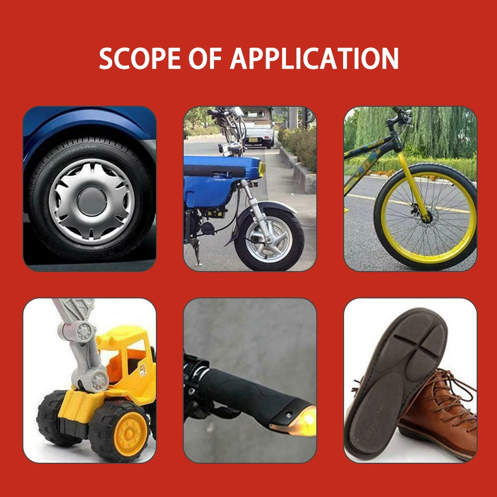 Этот клей может ремонтировать только небольшую часть царапин резиновых шин, Большие трещины шин, отверстия, утечка воздуха и другие серьезные детали не могут быть отремонтированы.