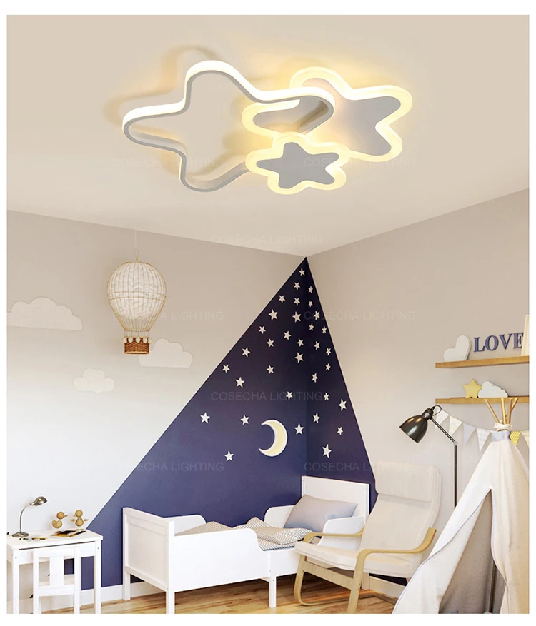 Потолочный светильник с розовой звездой, с регулируемой яркостью для девочек, спальни, современный потолочный светильник с белой звездой для детской комнаты, креативный свет