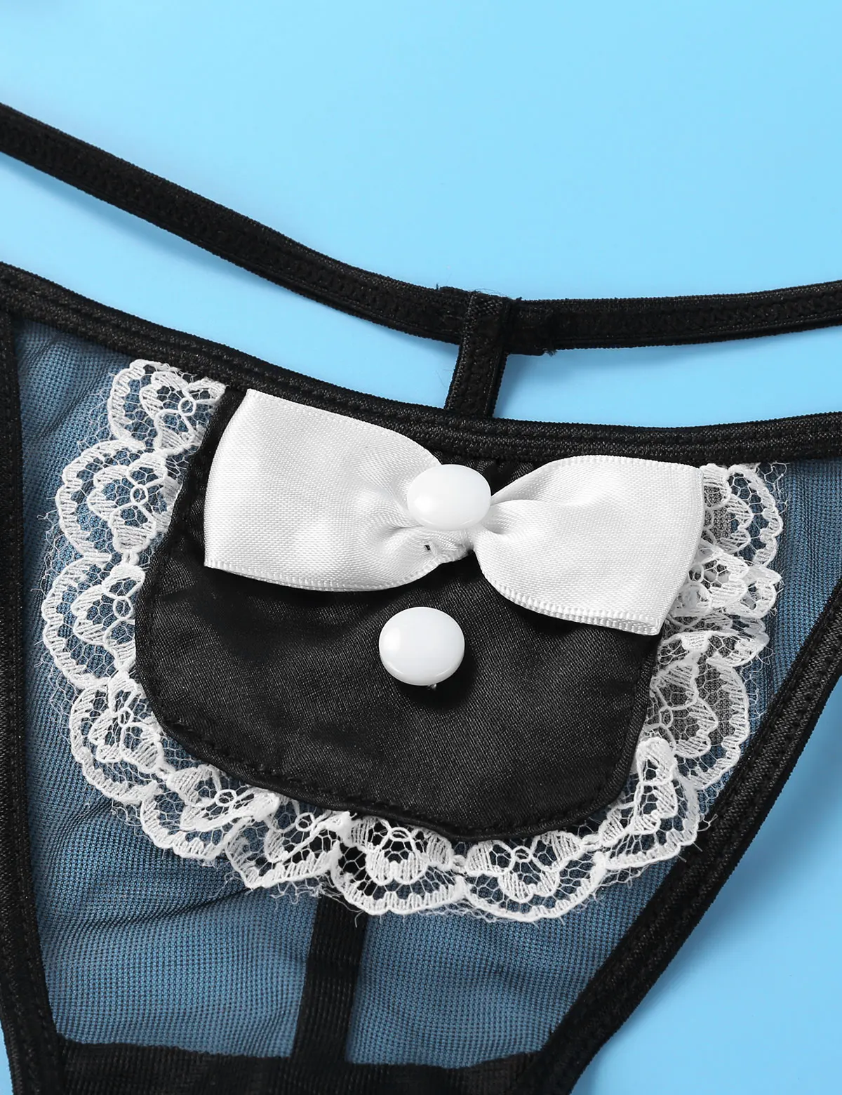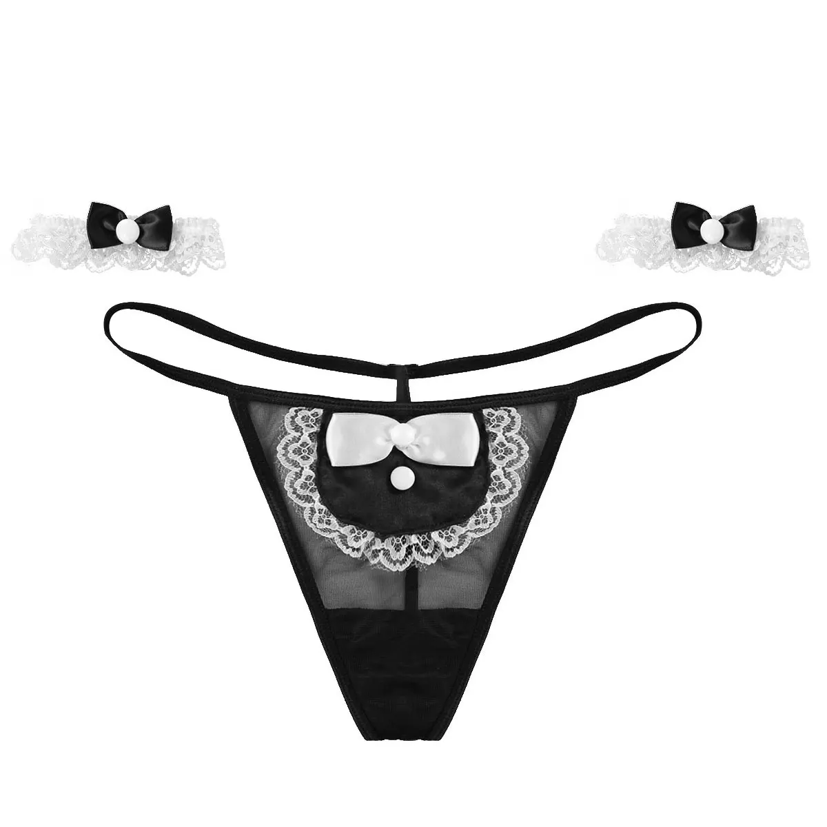 С низкой посадкой и эластичным поясом, прозрачное Сетчатое мини-покрытие с бантом и кружевными полями, Т-образной спинкой.