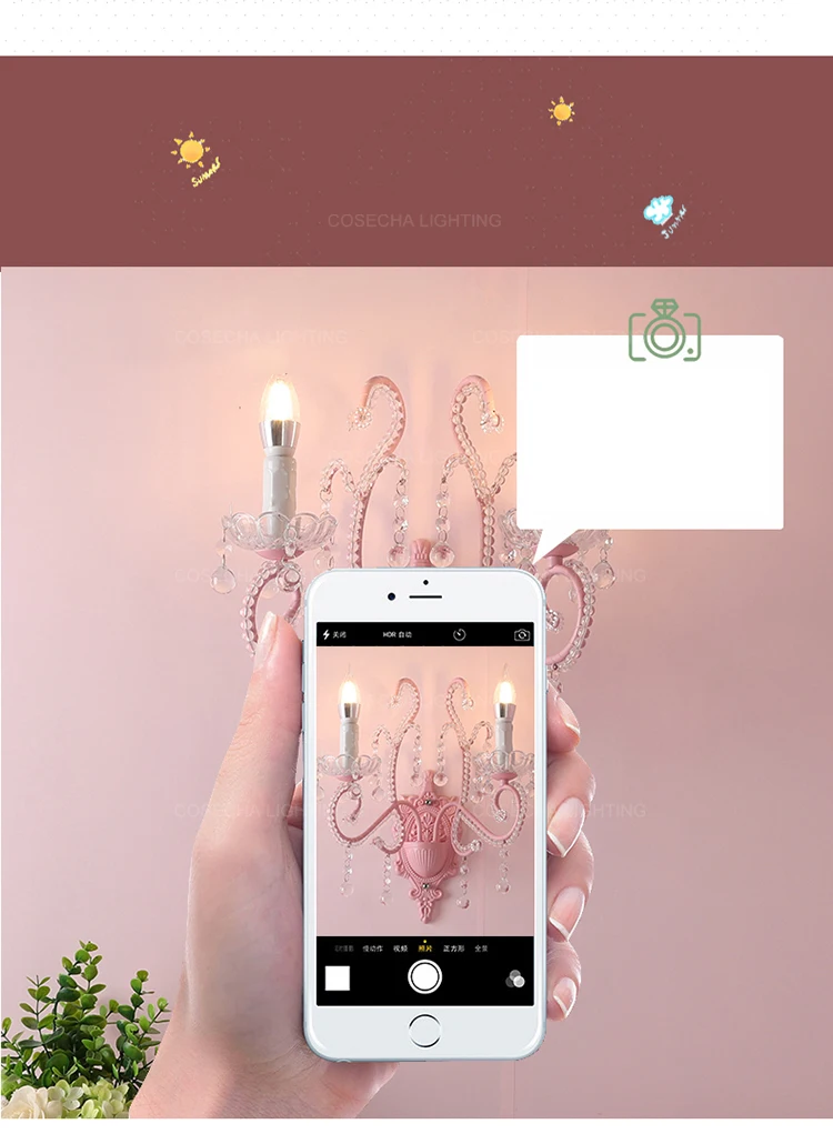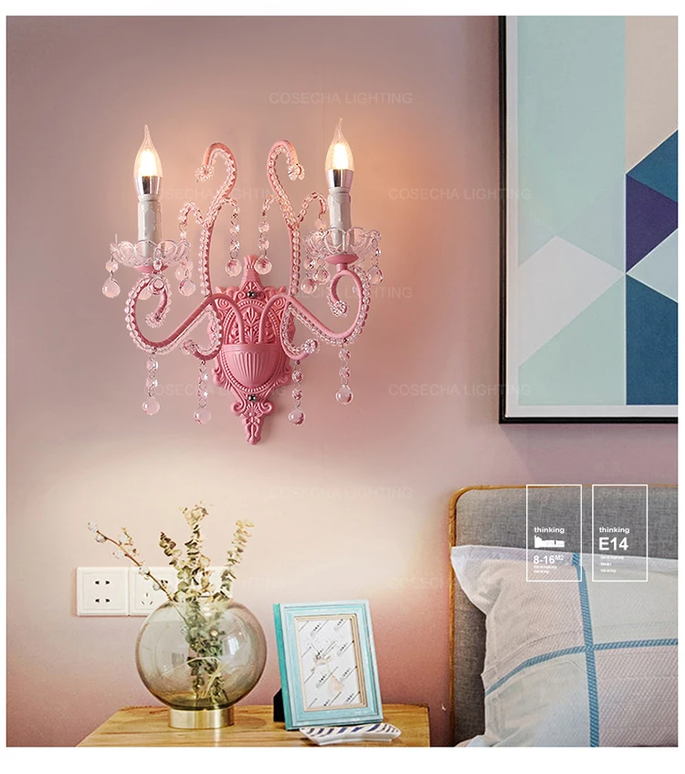 Розовые Настенные светильники для девочек, хрустальные Настенные светильники для принцессы, Роскошные Настенные бра для спальни, декоративные светильники для комнаты дочери