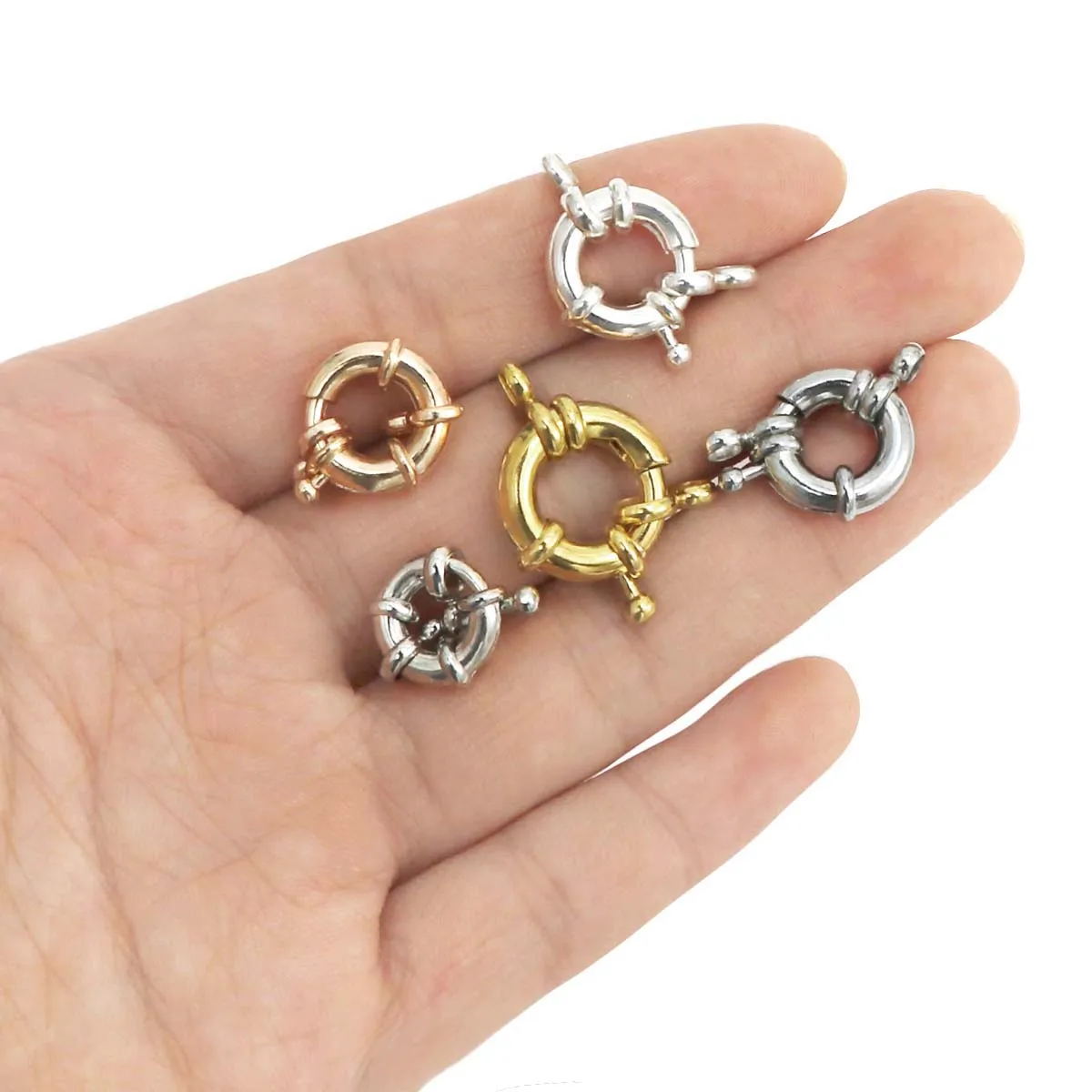 10 шт. медные золотистые/Серебристые Пружинные застежки, крючки, круглые ключицы для браслетов, соединителей ожерелий, сделай сам, ювелирные изделия