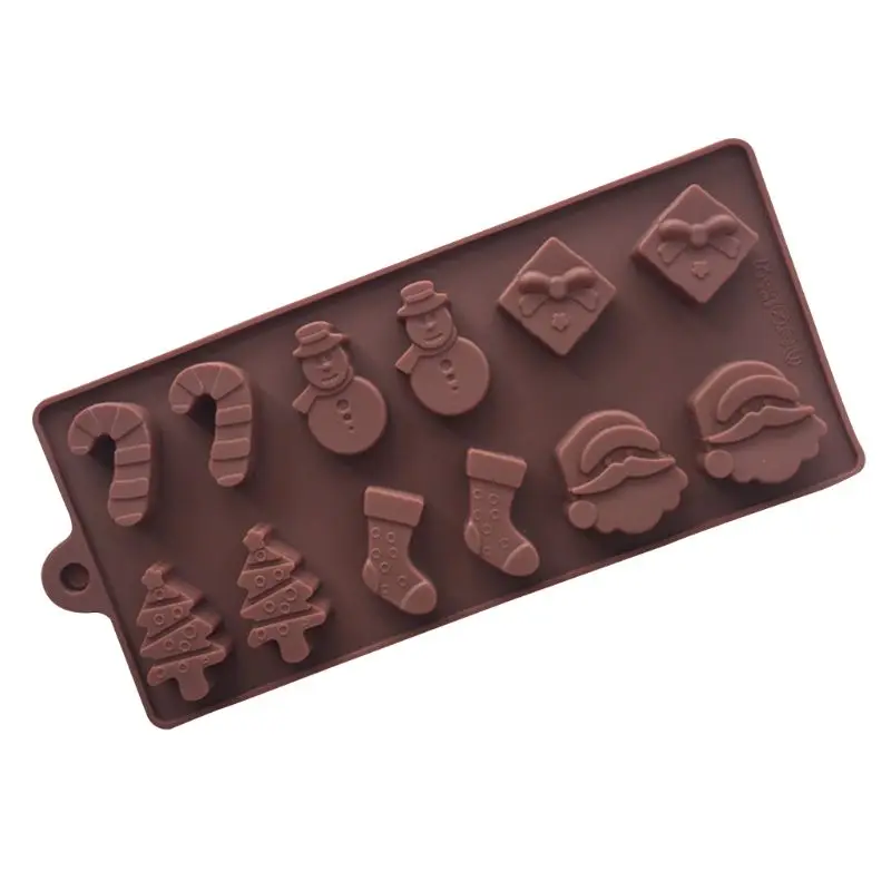 Набор из 4: 4 вида форм для шоколада, с формой снеговика, носки, палочки для конфет, Подарочная коробка, печенья, конфеты тростника, звезды, колокольчик, голова Санты, рождественская елка, вечеринки, самодельные энтузиасты.