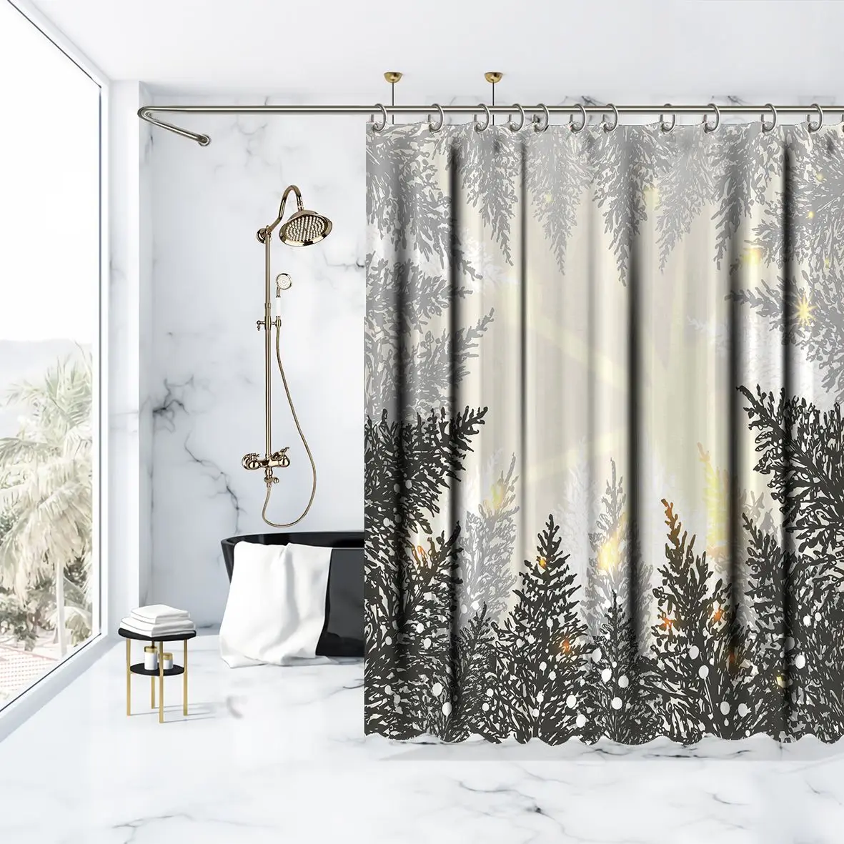 Henge домашние занавески для душа изготовлены из высококачественной, машинной стирки, водонепроницаемой полиэфирной ткани.