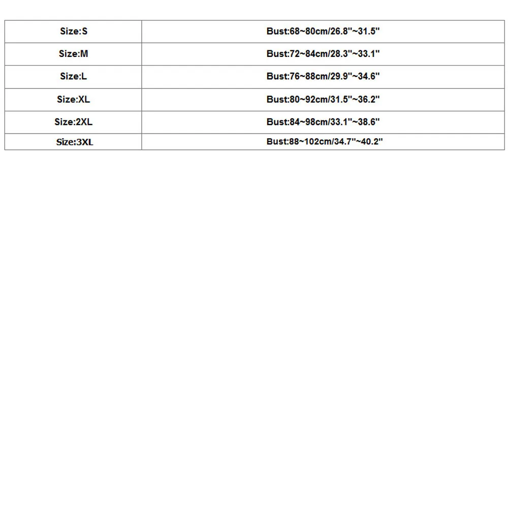 Размер Обхват груди S 68 ~ 80 см/26,8 "~ 31,5" М 72-84 см/28,3 "~ 33,1" L 76 ~ 88 см/29,9 "~ 34,6" XL Установка для скважин диаметром 80-92 см/31,5 "~ 36,2" 2XL 84-98 см/33,1 "~ 38,6" 3XL 88 ~ 102 см/34,7 "~ 40,2" Размеры: S Бюст: 68 ~ 80 см/26,8 "~ 31,5" Размеры: М Бюст: 72 ~ 84 см/28,3 "~ 33,1" Размеры: L Бюст: 76 ~ 88 см/29,9 "~ 34,6" Размеры: XL Обхват груди: 80-92 см/31,5-36,2 дюймов Размеры: 2XL Бюст: 84 ~ 98 см/33,1 "~ 38,6" Размеры: 3XL Обхват груди:88 ~ 102 см/34,7 "~ 40,2"