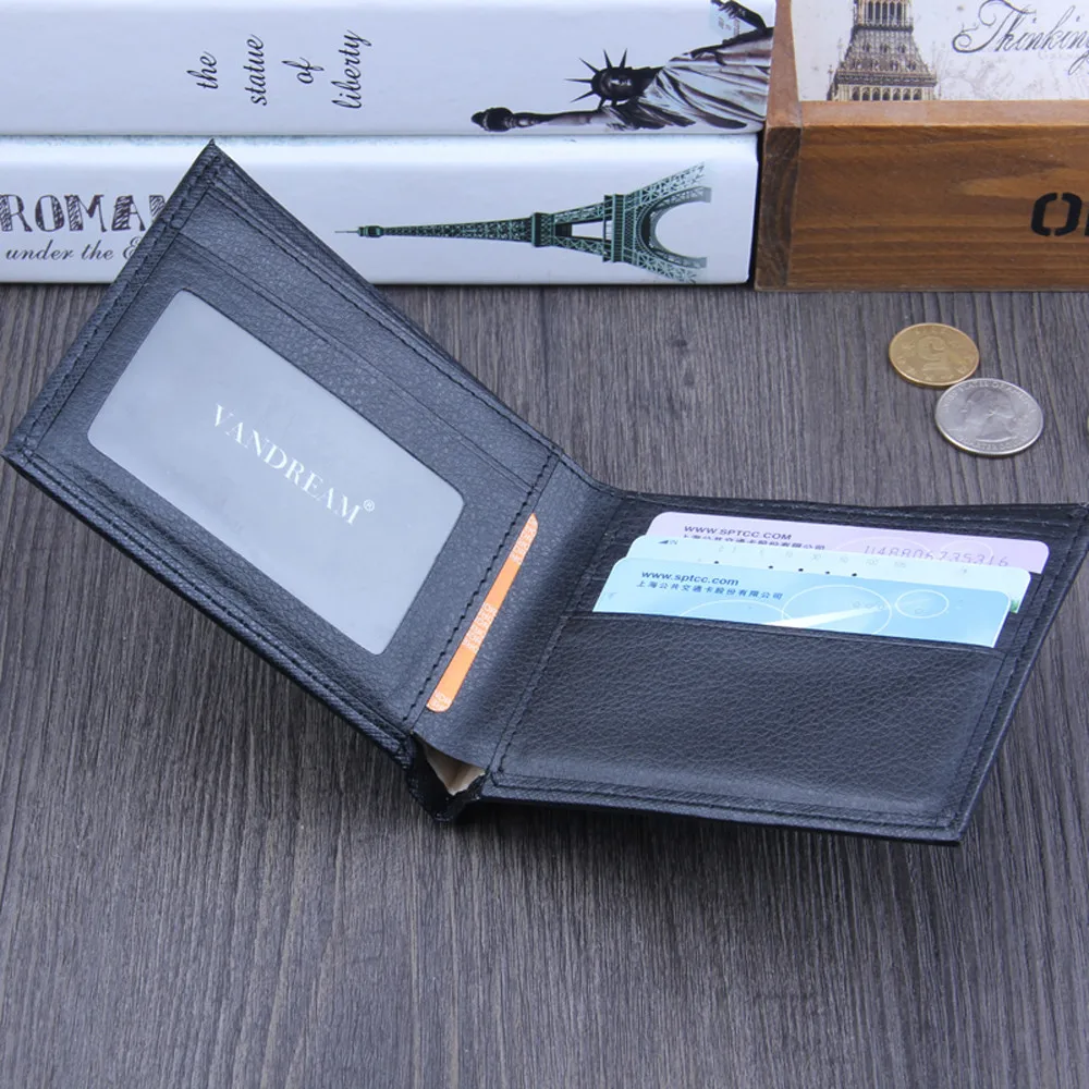 Мужской кошелек, деловой, двойной, кожаный, для ID карты, кошелек, для кредитных карт, карман держатели, короткий кошелек