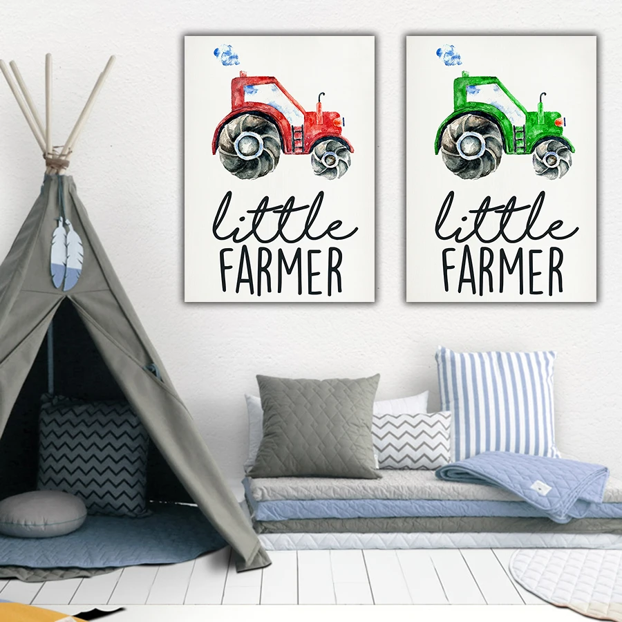 Маленький фермер плакат и трактор Печать Искусство картина маслом для мальчиков детская комната пикт...