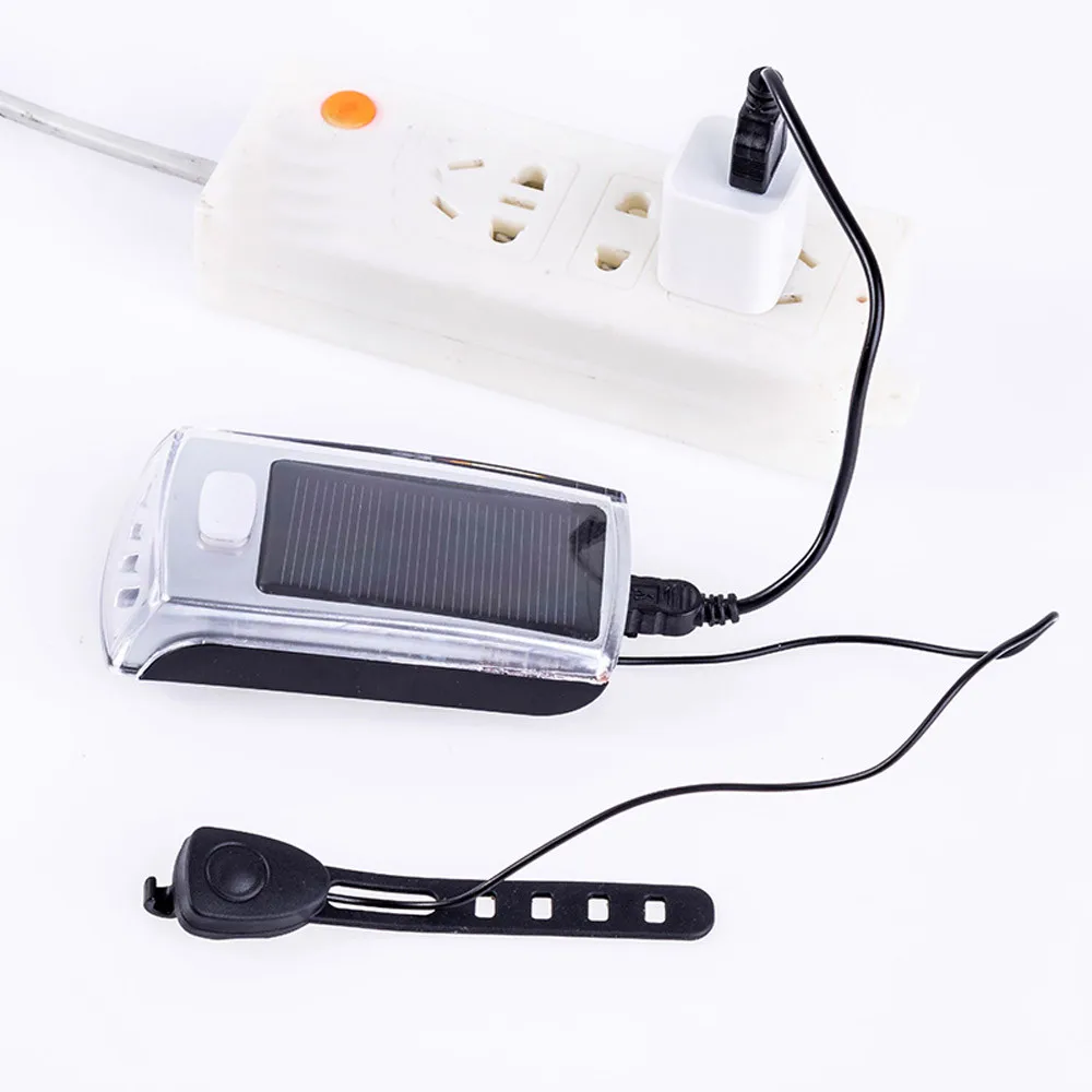Велосипедный передний светильник, набор, USB Перезаряжаемый умный головной светильник, 4 вида звука, зарядка, новый 4 светодиодный фонарь на солнечной батарее + динамик