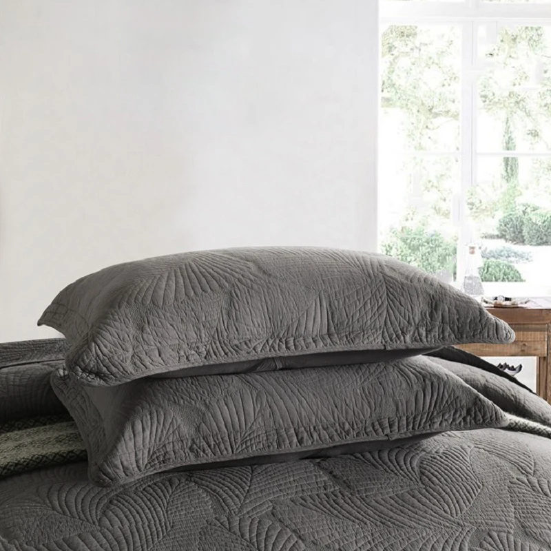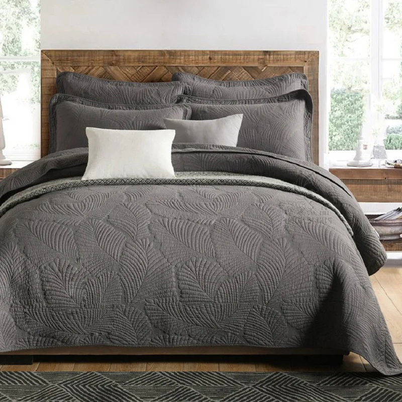Мыть хлопок покрывало Стёганое одеяло, комплект из 3 предметов: однотонная с вышивкой покрывало Стёганое одеяло ed покрывала и наволочки) одеяло для кровати размера Queen Size
