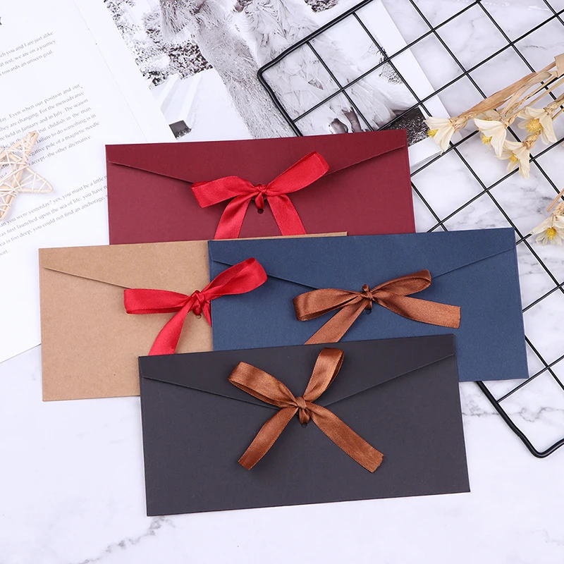 Простой Конверт, украшенный бантом, излучает разную элегантность, используется для открыток, приглашений, писем и т. д., изготовлен из импортной бумаги, плотной и твердой текстуры