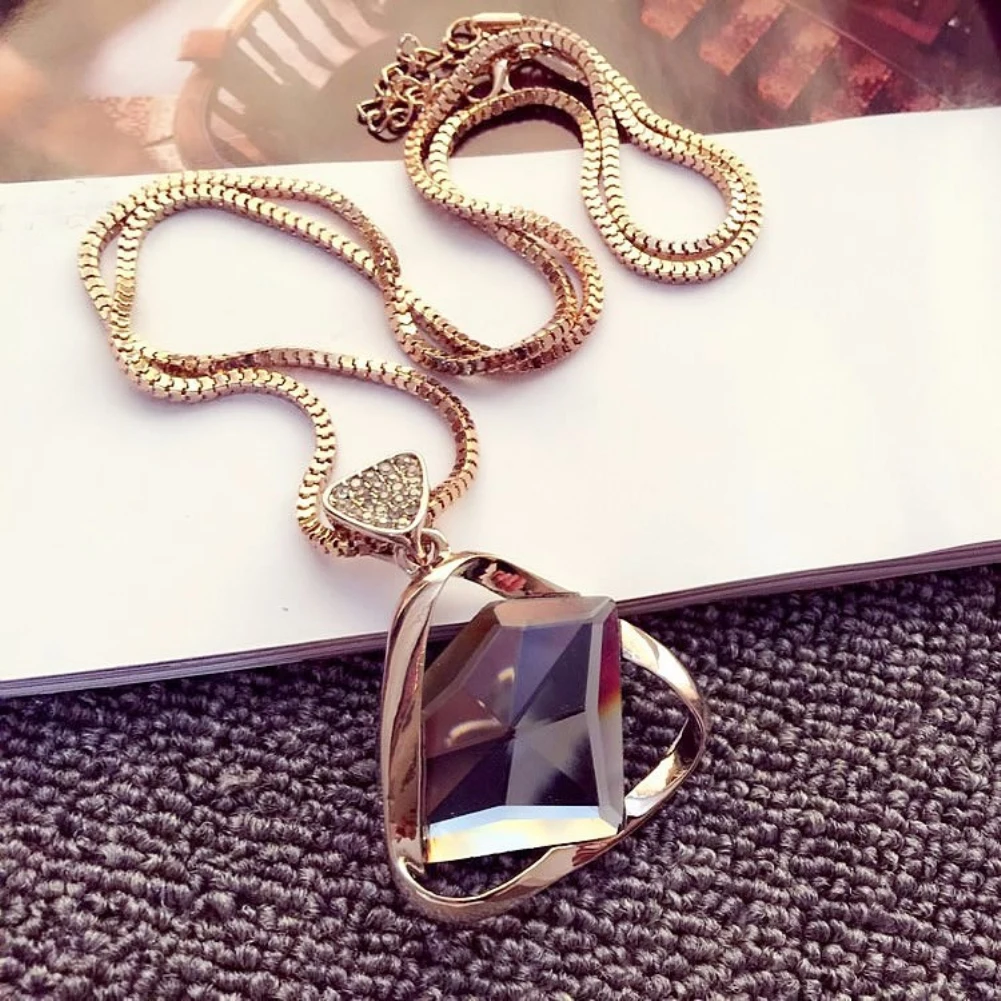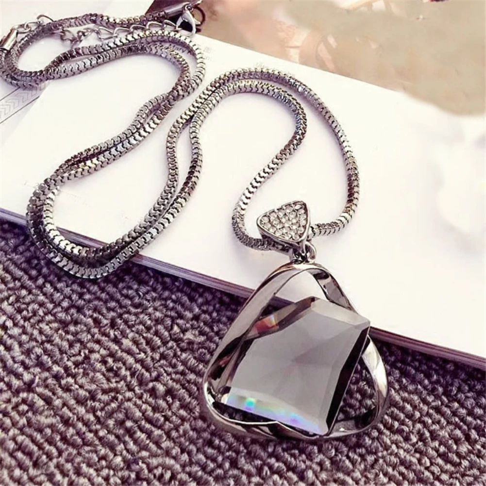 Женская мода, стразы, треугольная подвеска, ожерелье, свитер, цепочка, ювелирные изделия, подарок