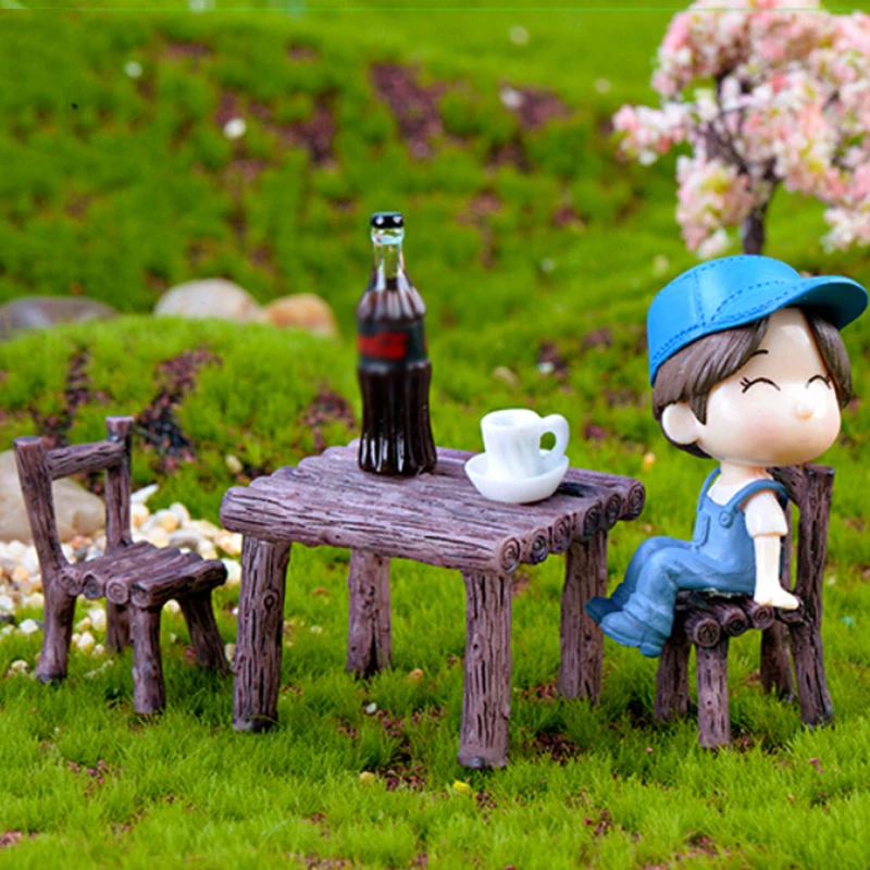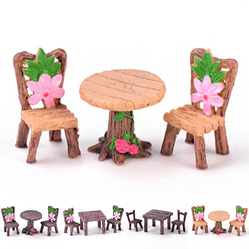 * Сад ремесло горшки для растений сказочный орнамент миниатюрный смоляный стол и стул Декор набор