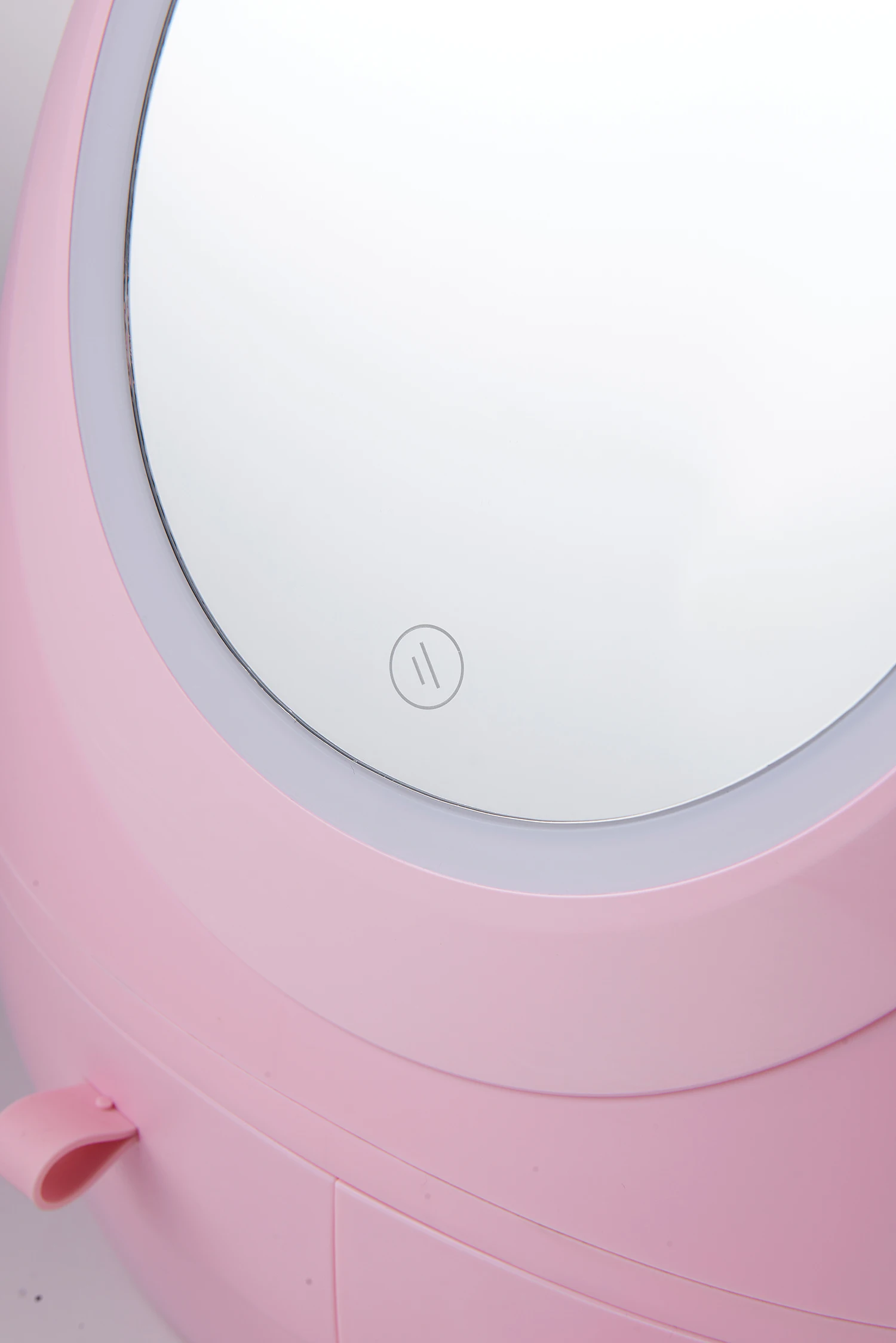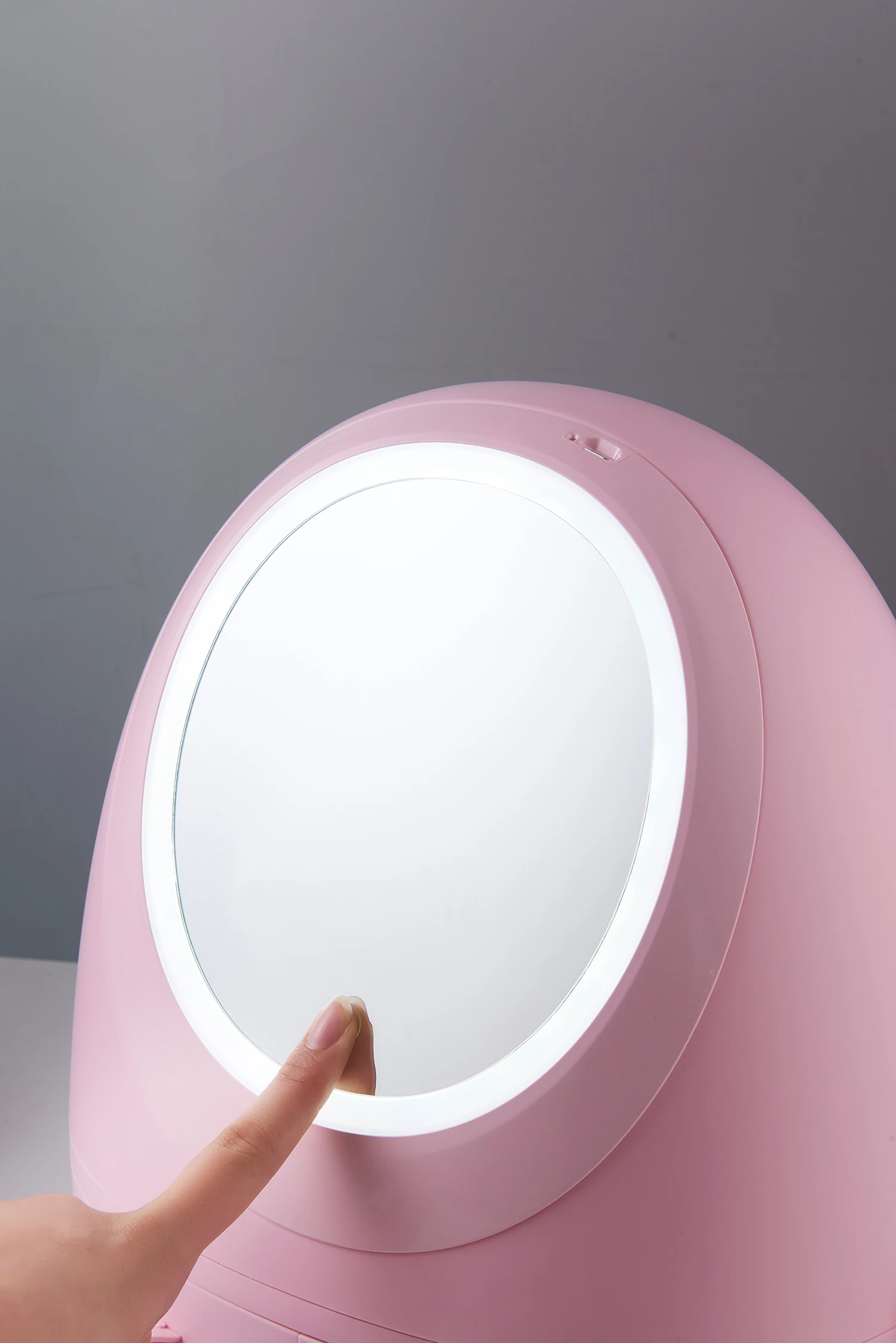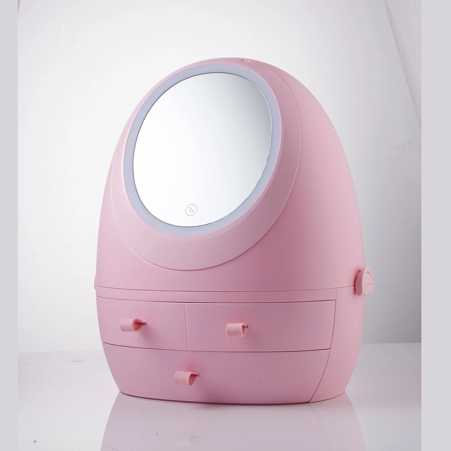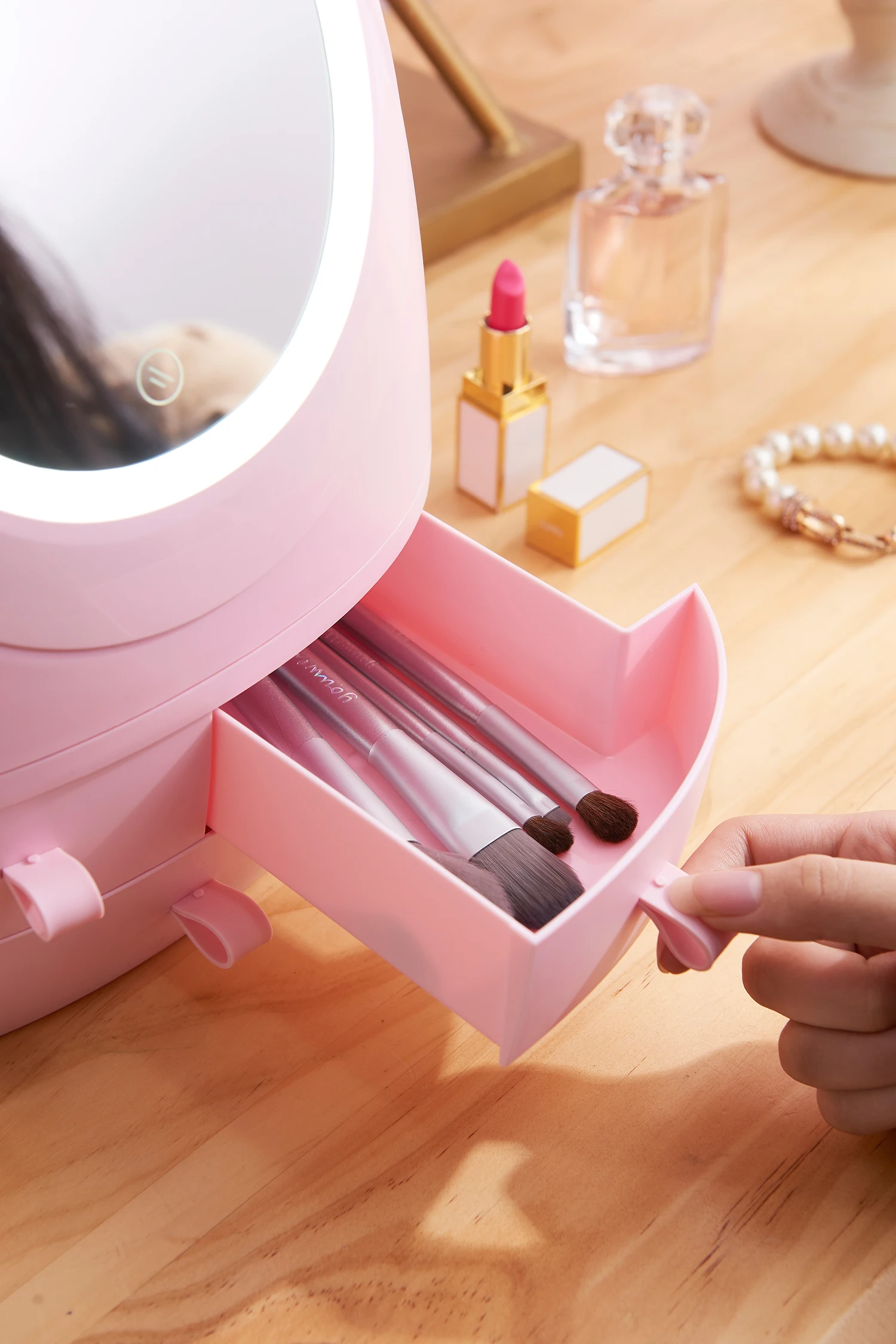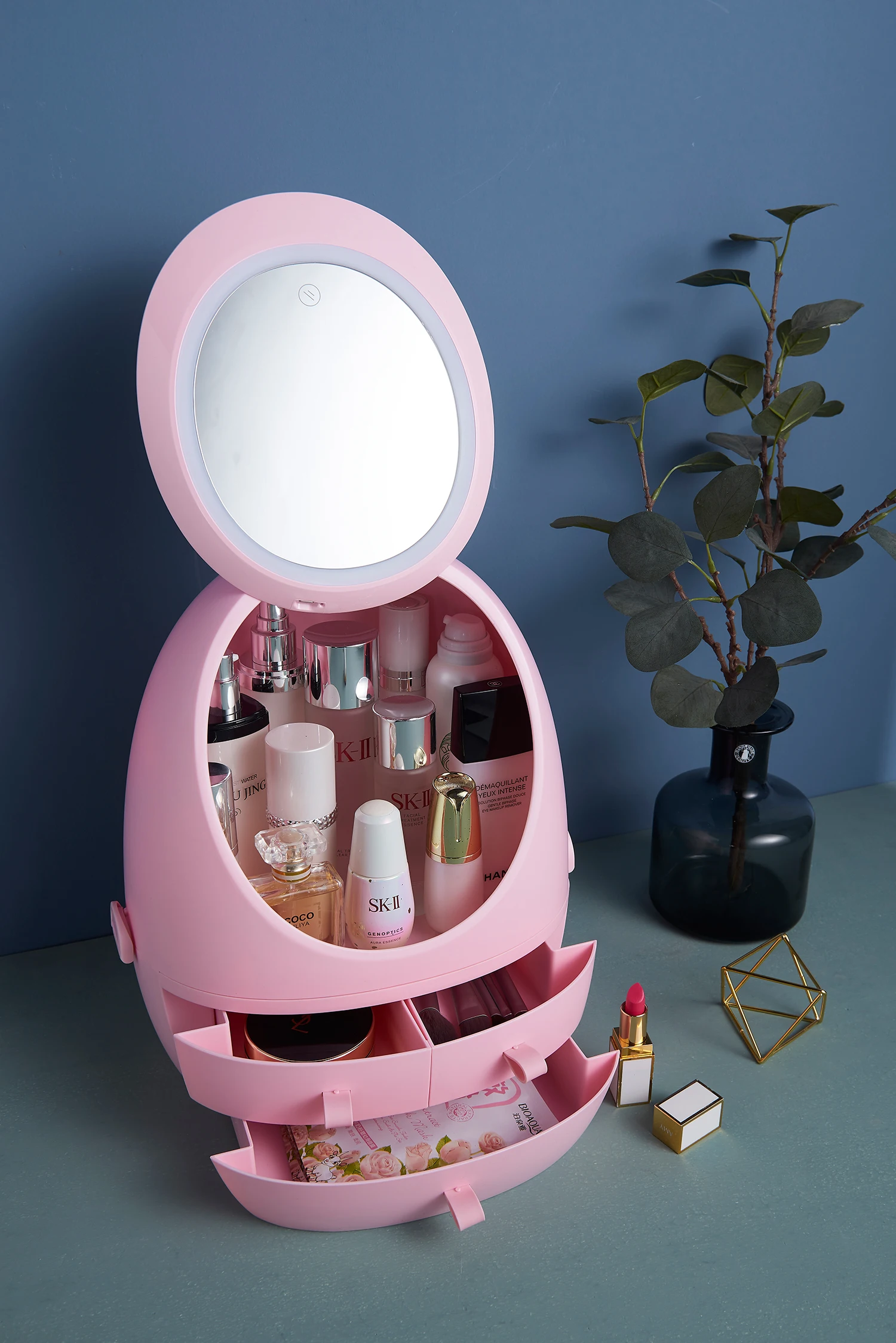 Новейший светодиодный ящик для хранения косметики с зеркальной головкой, розовые женские пылезащитные водонепроницаемые украшения, косметическая коробка USB