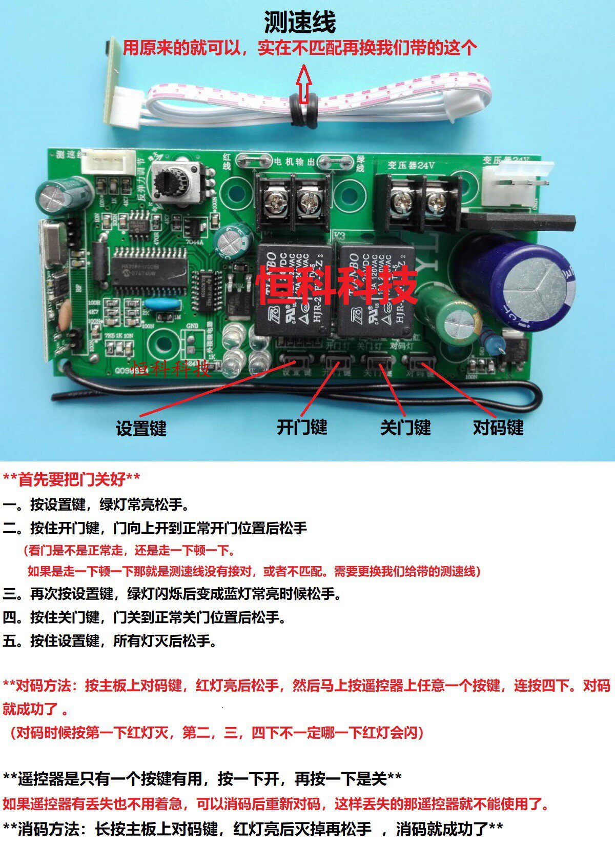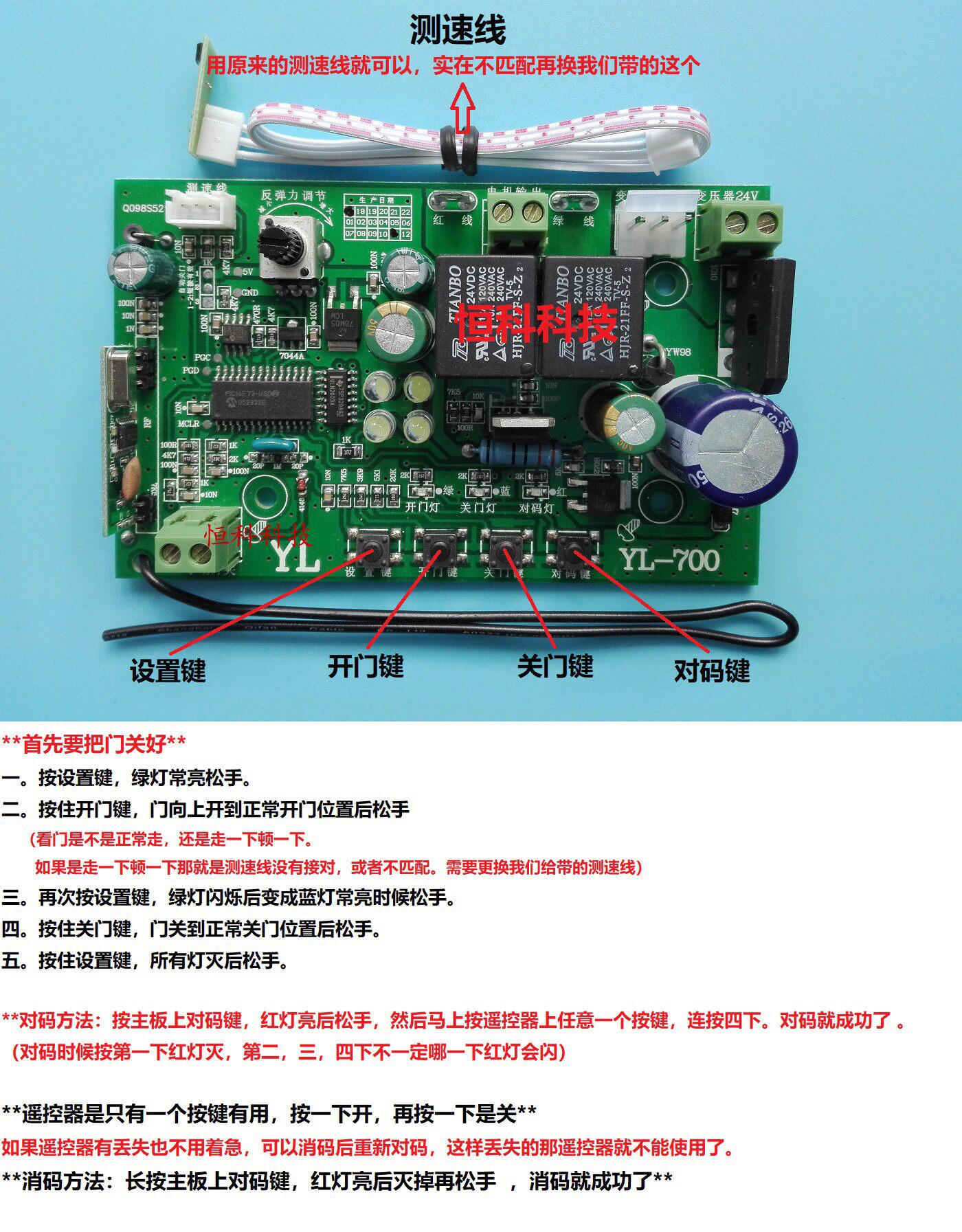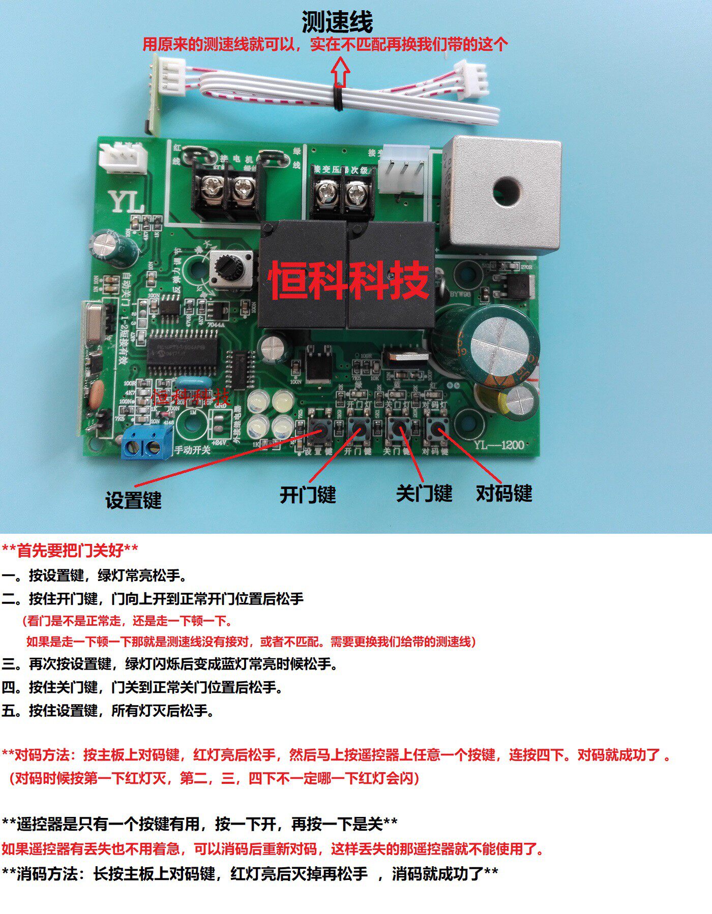 Производительность материнской платы зависит от качества оригинала, а не размера материнской платы. Хорошие оригиналы в два раза дороже, чем плохие оригиналы. Конечно, срок службы также очень отличается, что не зависит от размера материнской платы. Как гласит поговорка, то, что концентрировано, является сущностью. Чем меньше та же функция, тем выше требуется мастерство. Обновленная версия, с мягким запуском, медленная в начале, затем быстрее и быстрее, есть порт, который может быть подключен к внешнему переключателю. Оказывается, есть настенный выключатель. Высокая мощность, большая скорость вращения двигателя, может быть выбрана большая дверь. В посылка включает в себя: Один материнская плата 2 дистанционный пульт ручки Скорости линии Применимые брендовые модели: Soma, Soma II, Soma 600, Soma 800, Seaside C600, Seaside C800, Sauer 600, Sauer 800, кленовый лист 600/800, SEASIDE, SEASIDEC600, SEASIDEC800, Область применения: Soma, Seaside, Sorge, Maple Leaf series и flip garage doors с использованием того же электронного лимита. Технический параметр 1. Входное напряжение платы управления: AC24V / 50 Гц 2. Статическое энергопотребление платы управления: ≤ 1 Вт 3. Номинальное напряжение двигателя: DC24V Максимальная мощность: 50 Вт 4. Рабочее напряжение пульта дистанционного управления: DC12V (питание от аккумулятора) 5. Потребляемая мощность пульта дистанционного управления: рабочий ток ≤ 12 мА 6. Частота передатчика дистанционного управления: 433 МГц 7. Расстояние запуска в открытом пространстве: 30 метров (более 50 метров в открытом пространстве без помех) 8. Рабочая температура: -20 ℃ ~ + 55 ℃ Функция детали 1. Функция электронного ограничения: Используйте элемент Холла для сбора длины и предела хода двигателя, простота установки и надежность в использовании; 2. Ручная функция: одноклавишное управление циклом; 3. Функция обнаружения сопротивления: когда дверь открывается, сопротивление останавливается, сопротивление закрытию двери отскочит примерно через 20 см и останавливается, когда дверь закрывает мягкие концы; Функция автоматического закрытия двери является опасной и отменена. 5. Функция вежливости лампы: после каждой остановки двигателя лампа вежливости выключается через 2 минуты и 50 секунд. Новая, обычная версия. Есть клеммы для замены двигателя и вилки питания. Запас обслуживания более удобен.