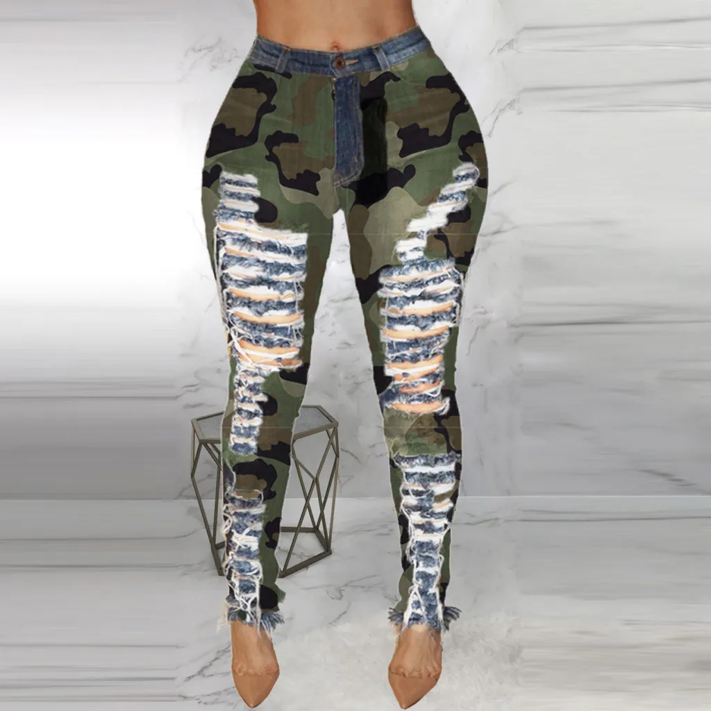 Женские камуфляжные джинсы с карманами на молнии и пуговицами, повседневные джинсовые узкие брюки