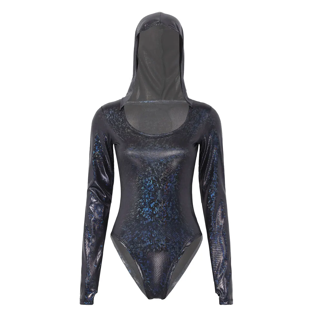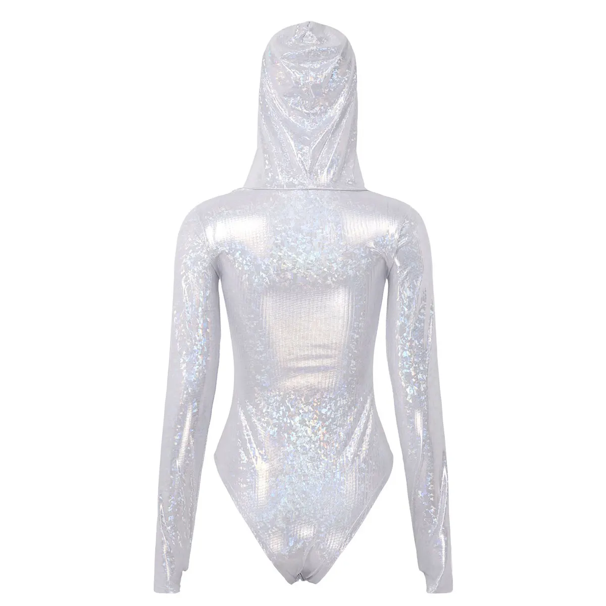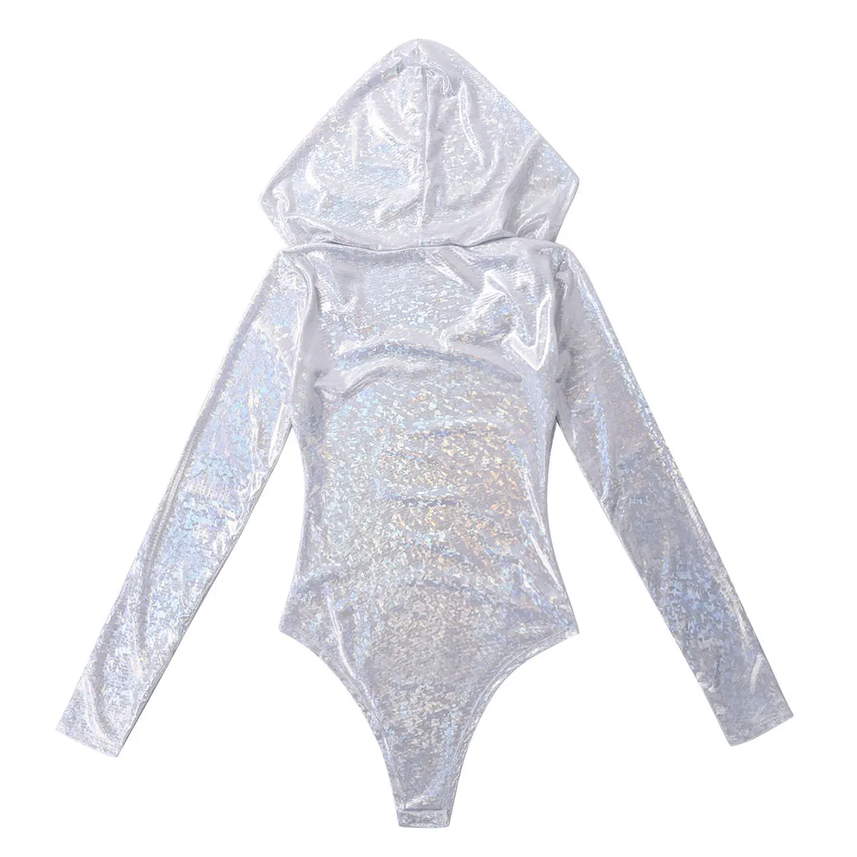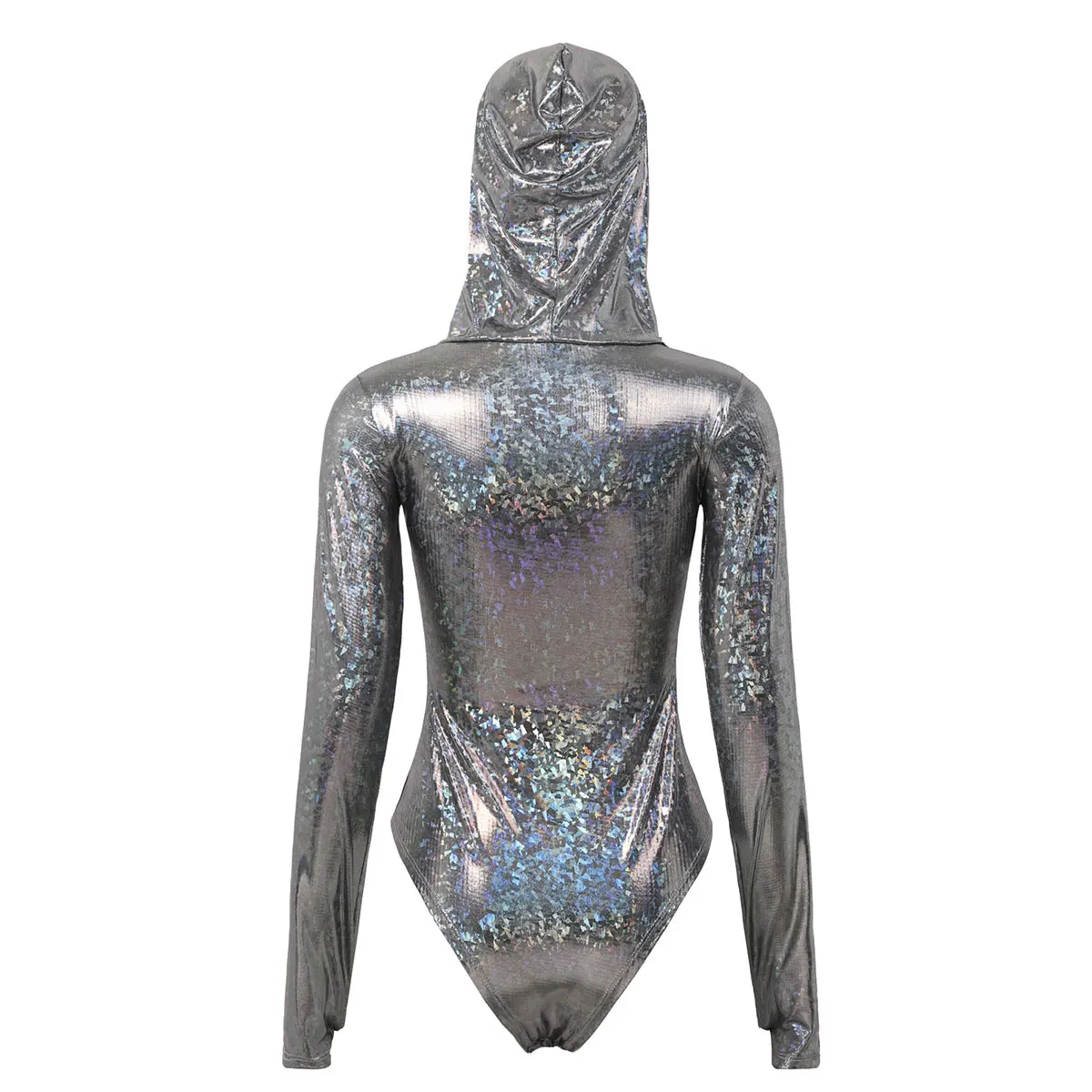 Женский цельный Блестящий металлический комбинезон с капюшоном, мерцающий и сверкающий светильник. Дизайн с капюшоном, круглый вырез и длинные рукава, промежность с тремя кнопками для удобства одевания, высокие вырезы ног. Глянцевый внешний вид, обнимает ваши изгибы идеально и плавно, хорошая эластичная и мягкая ткань, удобная в носке. Идеально подходит для вечерние, рейвы, Танцевальный класс, гимнастическое упражнение, пляжная одежда, ночной клуб, музыкальный фестиваль и выступления на сцене. Пожалуйста, внимательно проверьте таблицу размеров перед покупкой. Ручная стирка в холодной воде, не отбеливать, сушить в подвешенном состоянии.