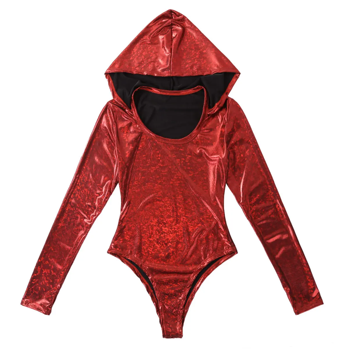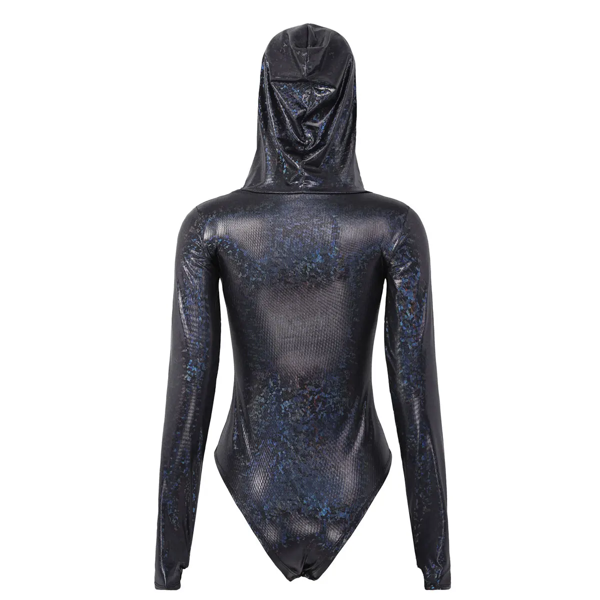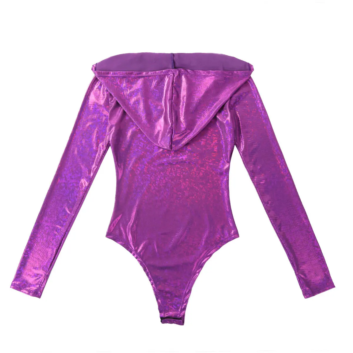 Женский цельный Блестящий металлический комбинезон с капюшоном, мерцающий и сверкающий светильник. Дизайн с капюшоном, круглый вырез и длинные рукава, промежность с тремя кнопками для удобства одевания, высокие вырезы ног. Глянцевый внешний вид, обнимает ваши изгибы идеально и плавно, хорошая эластичная и мягкая ткань, удобная в носке. Идеально подходит для вечерние, рейвы, Танцевальный класс, гимнастическое упражнение, пляжная одежда, ночной клуб, музыкальный фестиваль и выступления на сцене. Пожалуйста, внимательно проверьте таблицу размеров перед покупкой. Ручная стирка в холодной воде, не отбеливать, сушить в подвешенном состоянии.