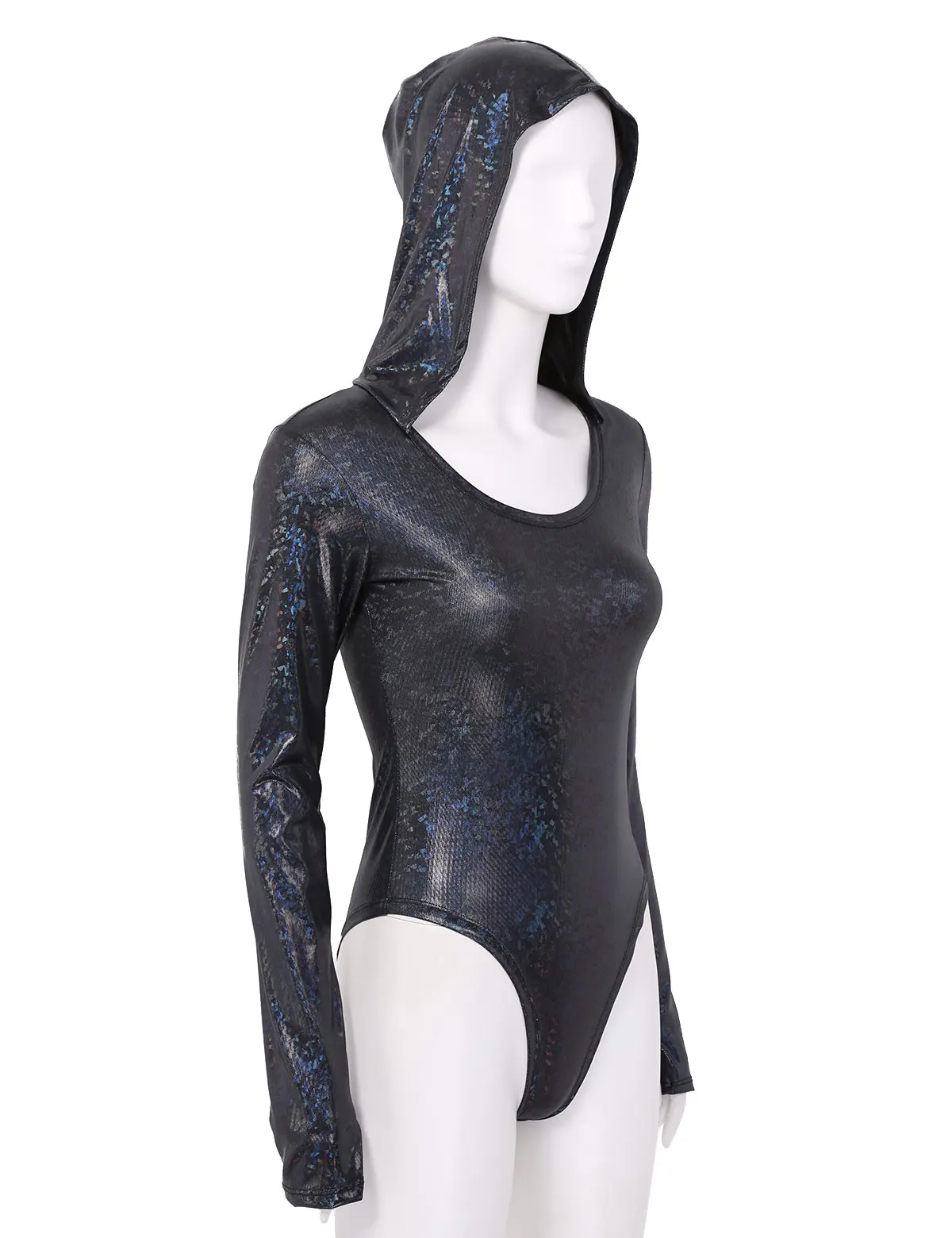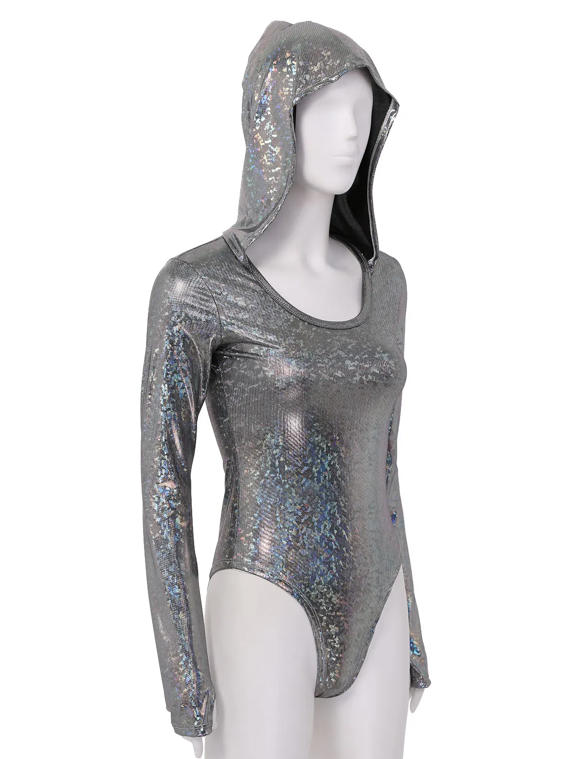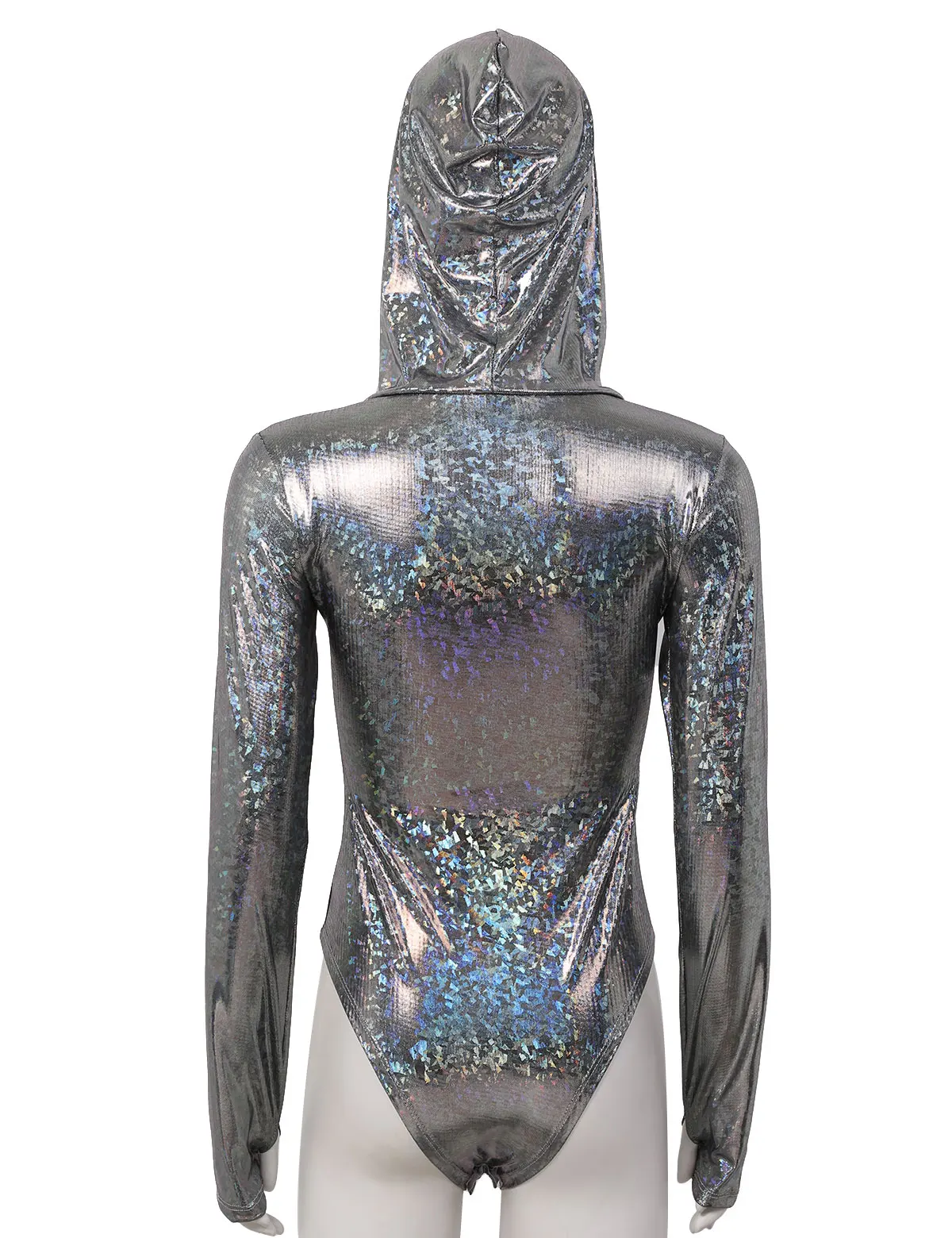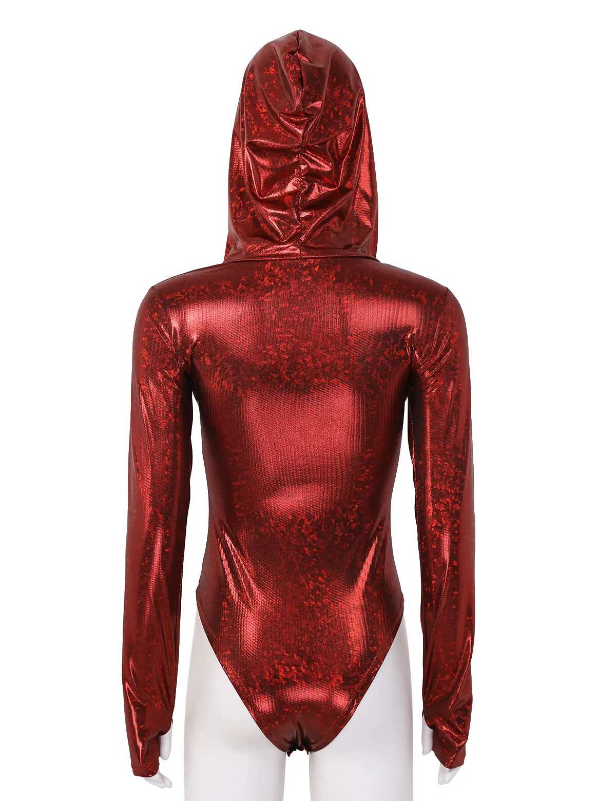 Женский цельный Блестящий металлический комбинезон с капюшоном, мерцающий и сверкающий светильник. Дизайн с капюшоном, круглый вырез и длинные рукава, промежность с тремя кнопками для удобства одевания, высокие вырезы ног. Глянцевый внешний вид, обнимает ваши изгибы идеально и плавно, хорошая эластичная и мягкая ткань, удобная в носке. Идеально подходит для вечерние, рейвы, Танцевальный класс, гимнастическое упражнение, пляжная одежда, ночной клуб, музыкальный фестиваль и выступления на сцене. Пожалуйста, внимательно проверьте таблицу размеров перед покупкой. Ручная стирка в холодной воде, не отбеливать, сушить в подвешенном состоянии.