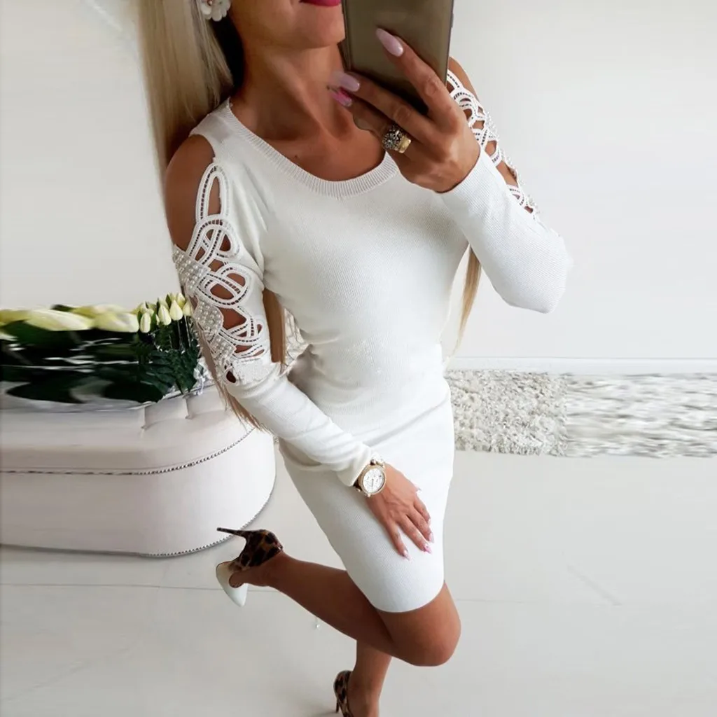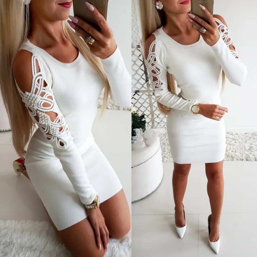 Женское зимнее повседневное мини-платье с длинным рукавом и круглым вырезом