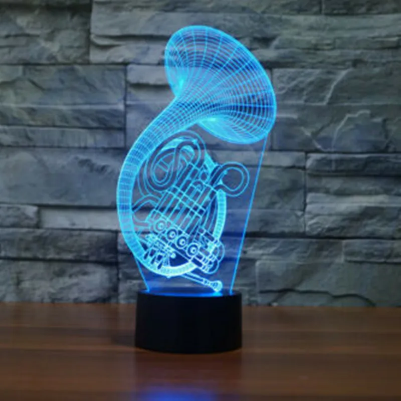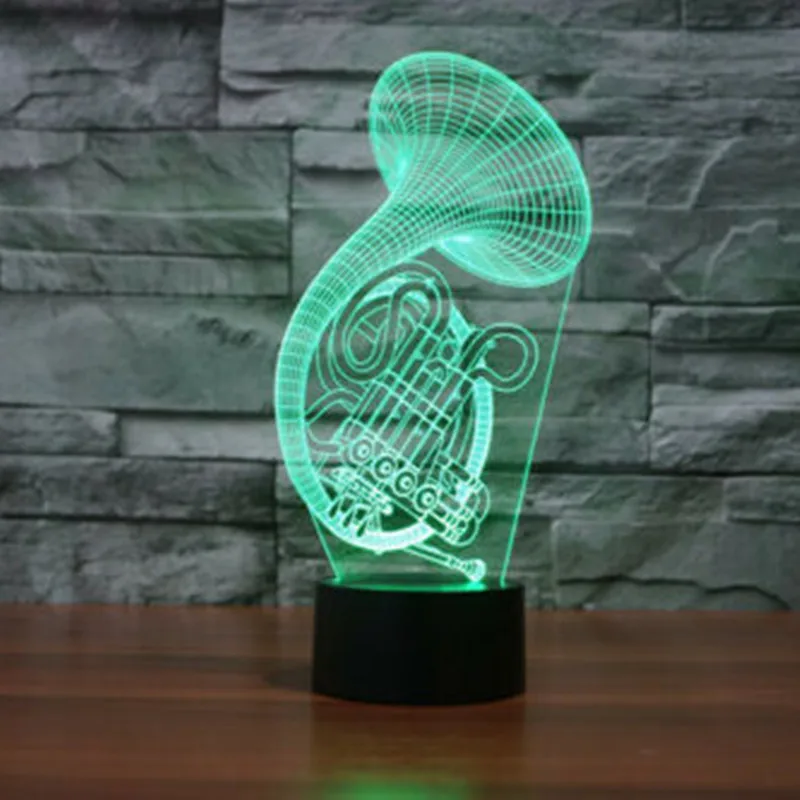Французский рожок Форма 3D ночной Светильник акриловый светодиодный 7 цветов Изменение USB Сенсорная настольная лампа домашний магазин Бар Декор Светильник s Дети Рождественский подарок