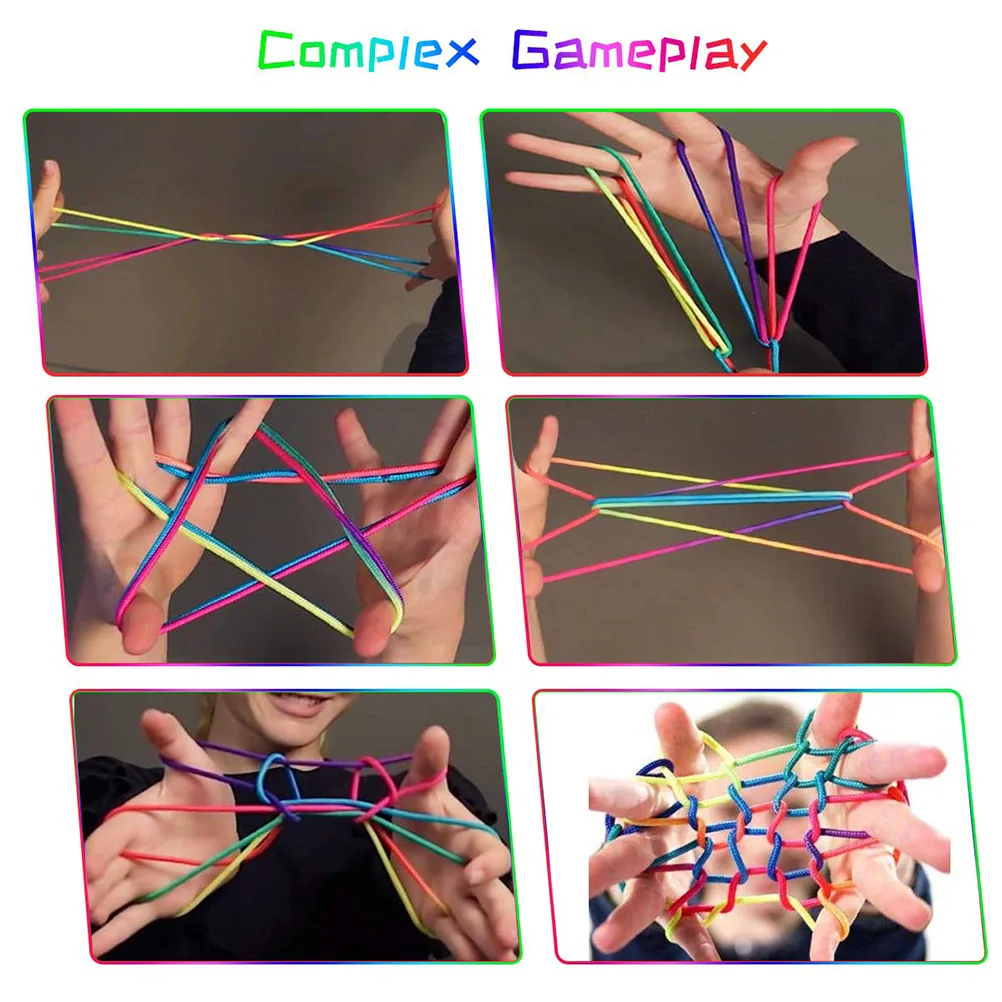 Интерактивная игровая игрушка: вы можете использовать эти игрушки с радужной веревкой для создания различных моделей. Создайте более 40 забавных форм. Предоставьте вам часы классического удовольствия. Веревка для пальцев может использоваться в качестве подарка, чтобы поделиться счастьем с друзьями.