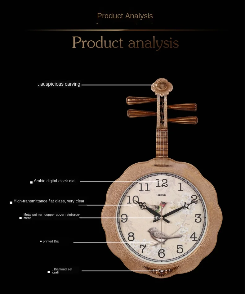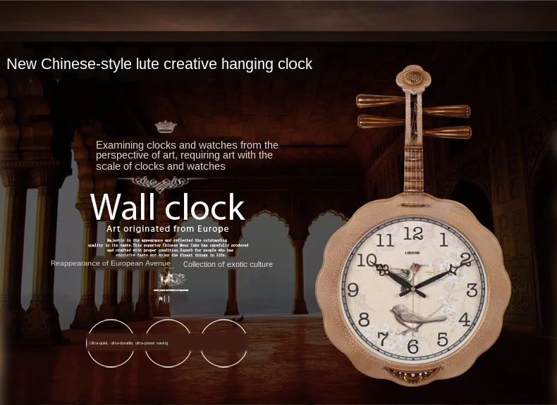 Большие 3d настенные часы в винтажном стиле, креативный стиль, китайский ветер, часы для гостиной, Pipa, часы для спальни Klokken Wandklokken SC347