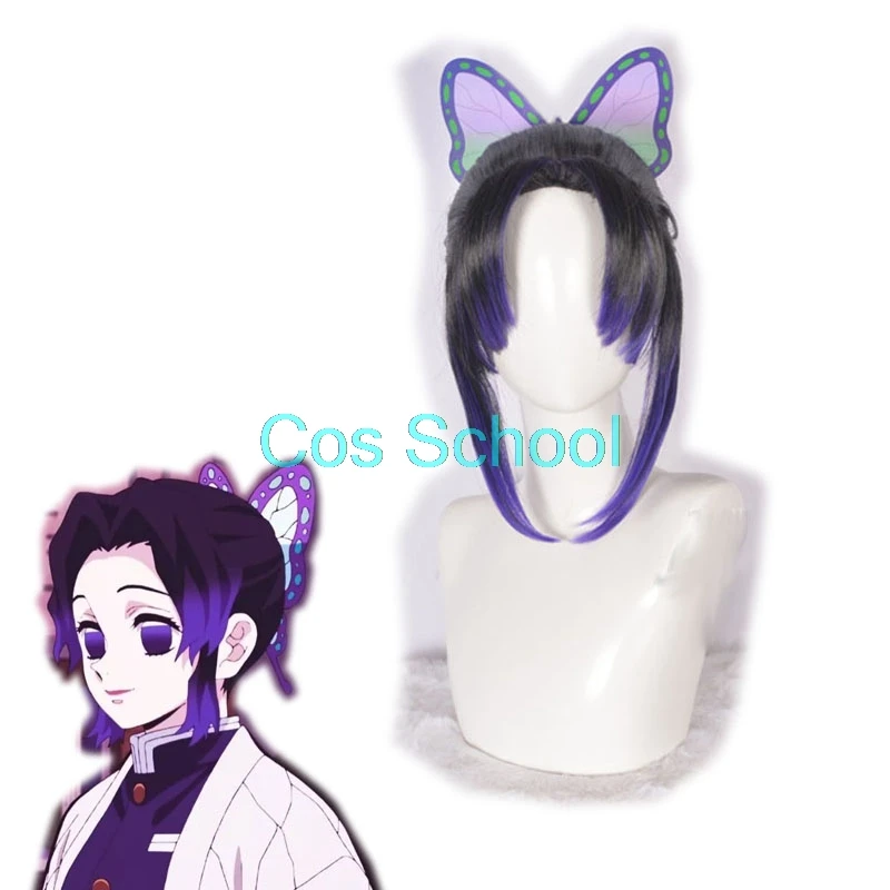 Cos School Kochou Shinobu Косплей парики и головные уборы Demon Slayer: Kimetsu no Yaiba Tsuyuri Kanawo парики и бабочка головной убор