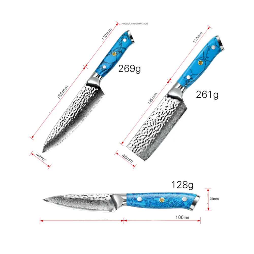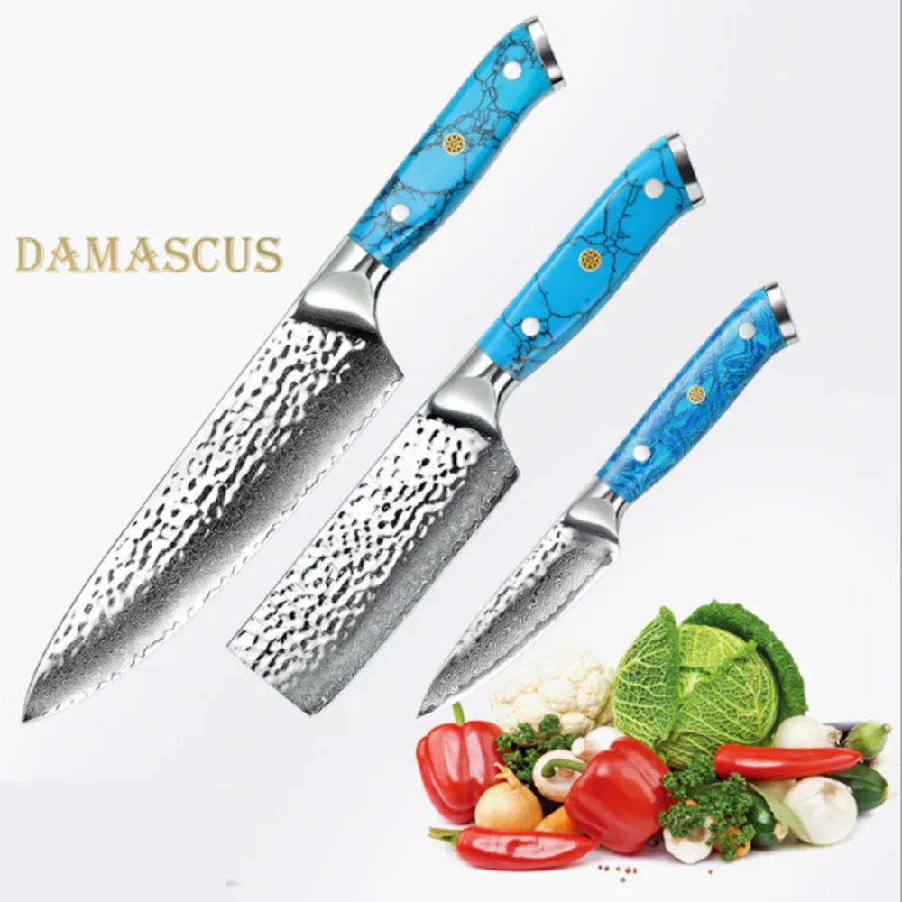 3 шт. набор ножей из дамасской стали, 67 слоев японской дамасской стали vg10 Chef Santoku кухонные ножи