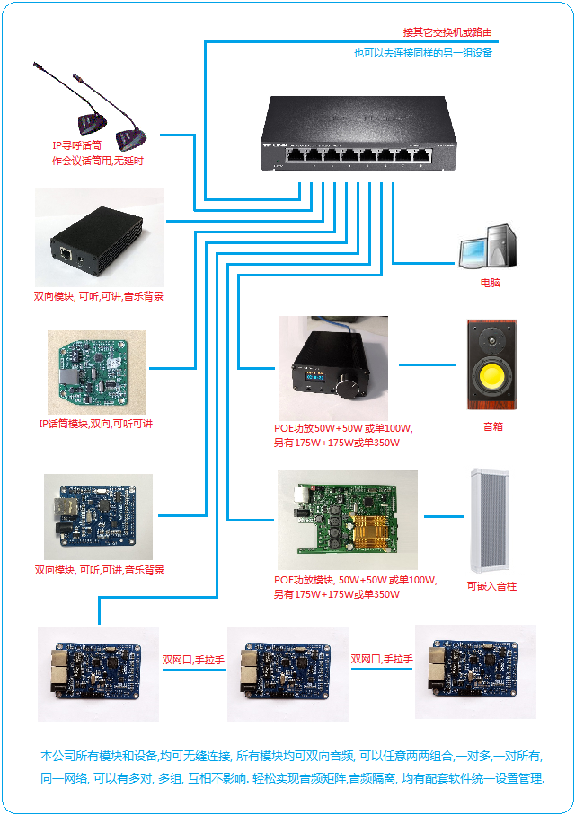 Это сетевой усилитель мощности, двойной мощности 50 Вт или один 100 Вт, сетевой кабель питания POE или внешний источник питания,