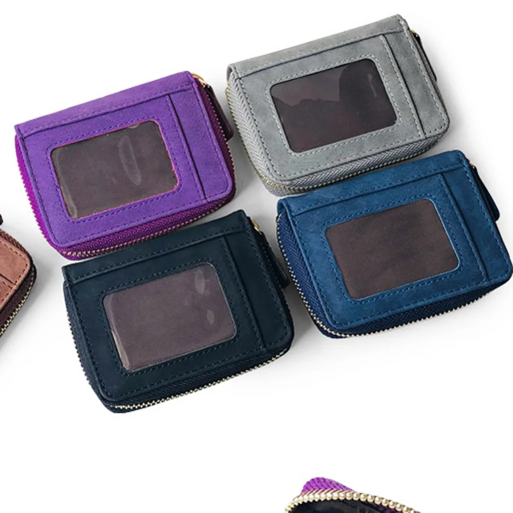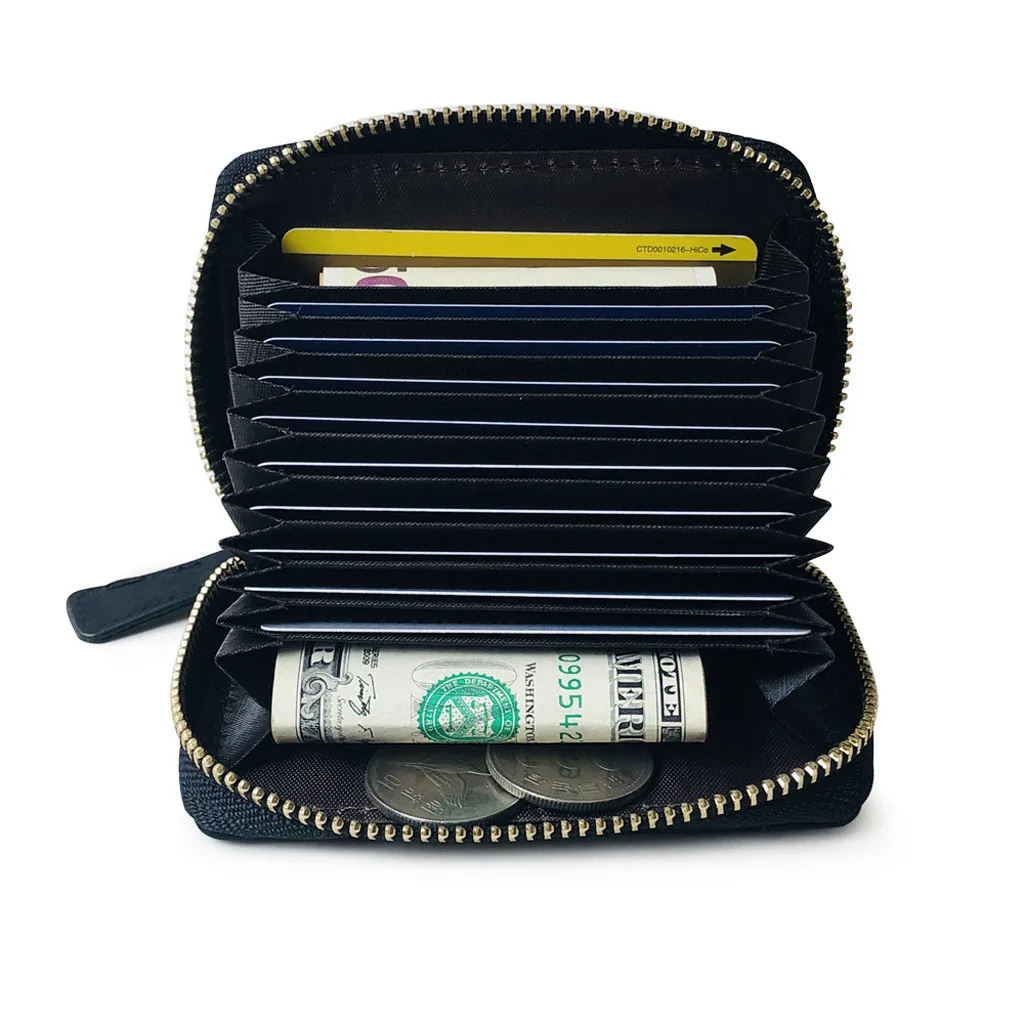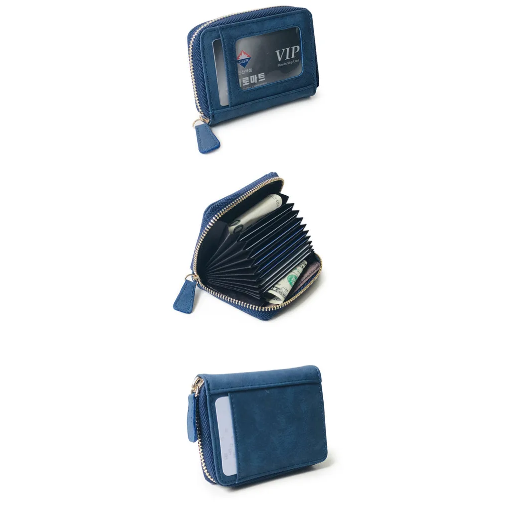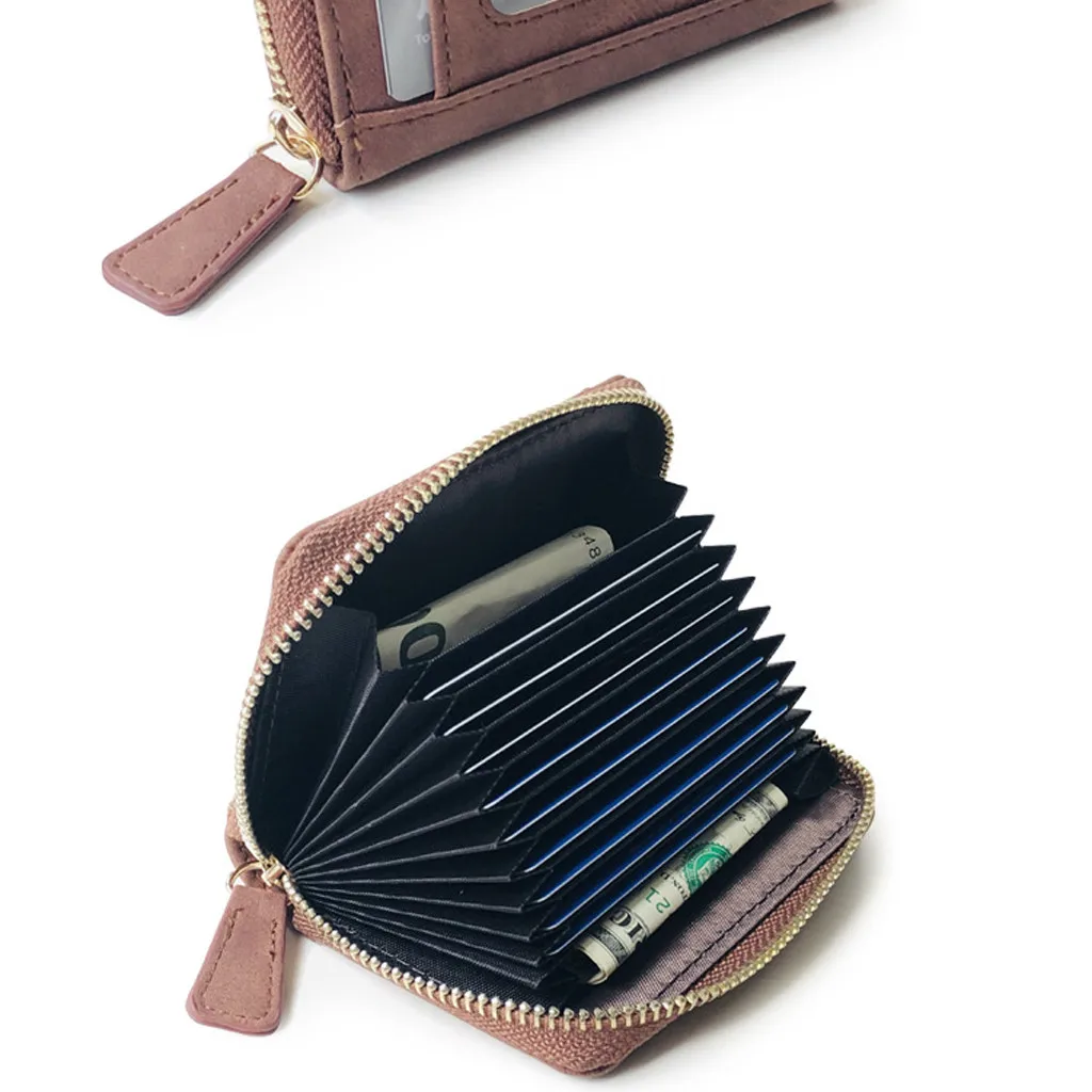 Women Men Fashion Accordion Style Matte Leather Fabric Card Wallet Package
