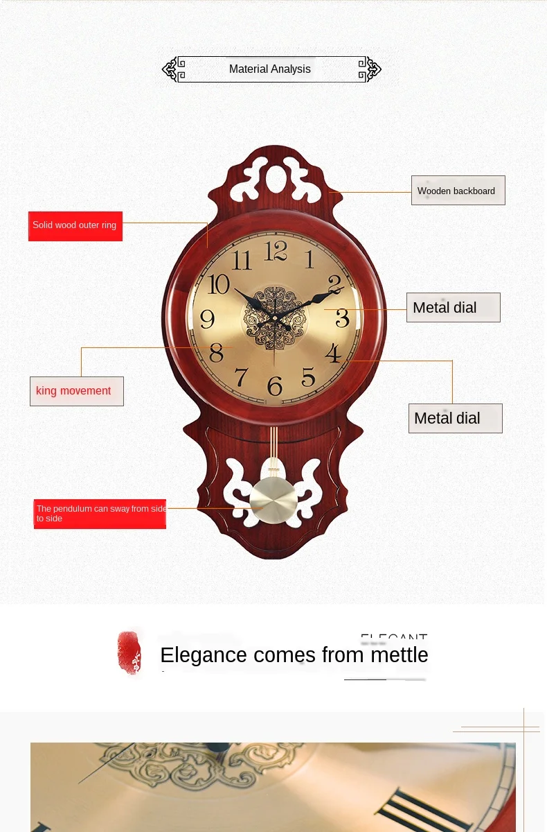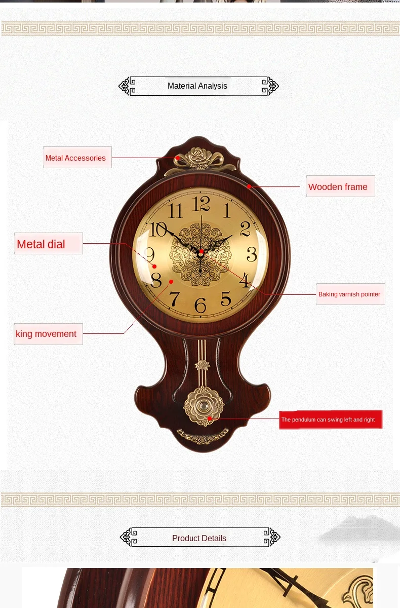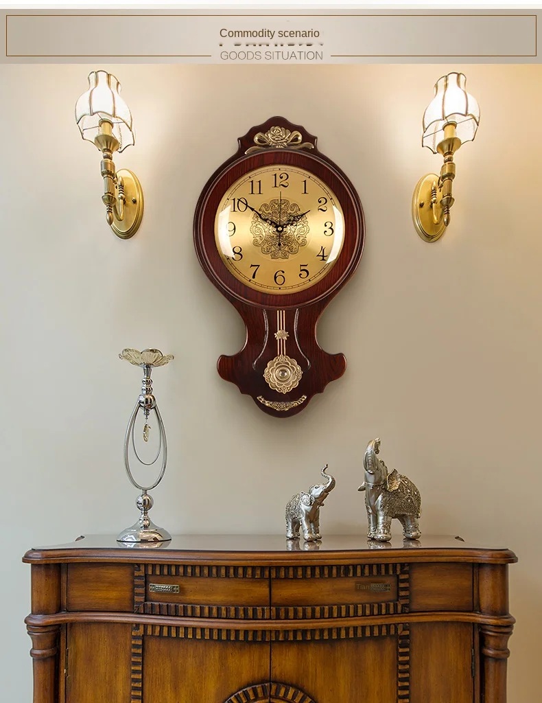 Настенные часы в европейском стиле винтажные маятниковые часы Настенный декор колокольчик гостиная радио часы домашний китайский стиль Duvar Saati Декор SC445