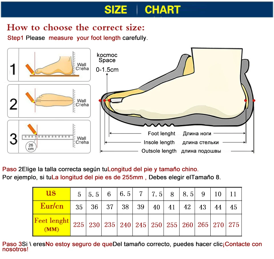 Сначала твердо встаньте ногами на пол, чтобы измерить самую длинную часть, затем используйте эти данные о длине стопы, чтобы найти соответствующий размер обуви в таблице размеров ниже. 1. Длина стопы в таблице размеров означает, что с помощью этой длины стопы можно выбрать соответствующий правильный размер, который будет подходящим. Длина стопы НЕ длина стельки НЕ длина подошвы. 2. Пожалуйста, выберите в соответствии с длиной вашей стопы (не выбирайте размер в соответствии с вашим обычным размером обуви!) 3. из-за различий в отображении и угле съемки цвет может немного отличаться от реального.