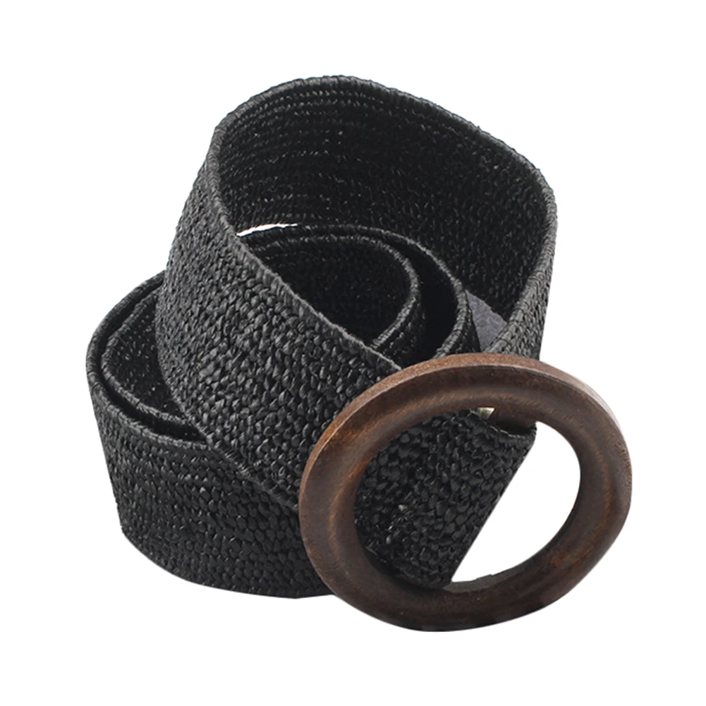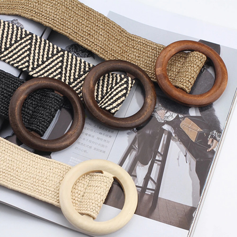 Винтажный плетеный пояс в стиле бохо, Круглый Деревянный широкий ремень с гладкой пряжкой