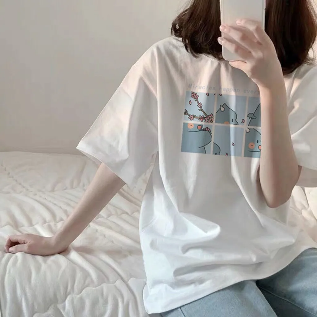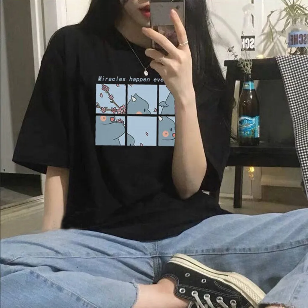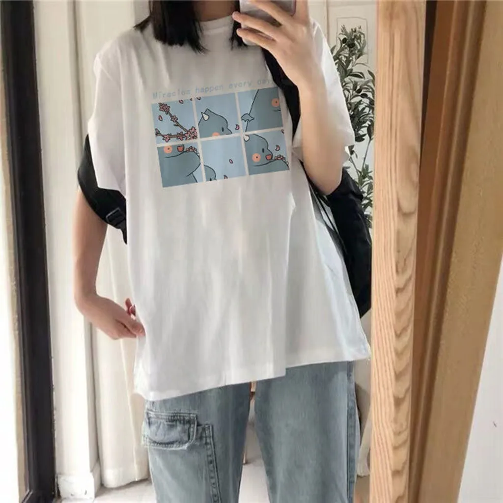 Женские летние свободные топы с коротким рукавом и рисунком из мультфильма для девочек, забавная футболка, туника
