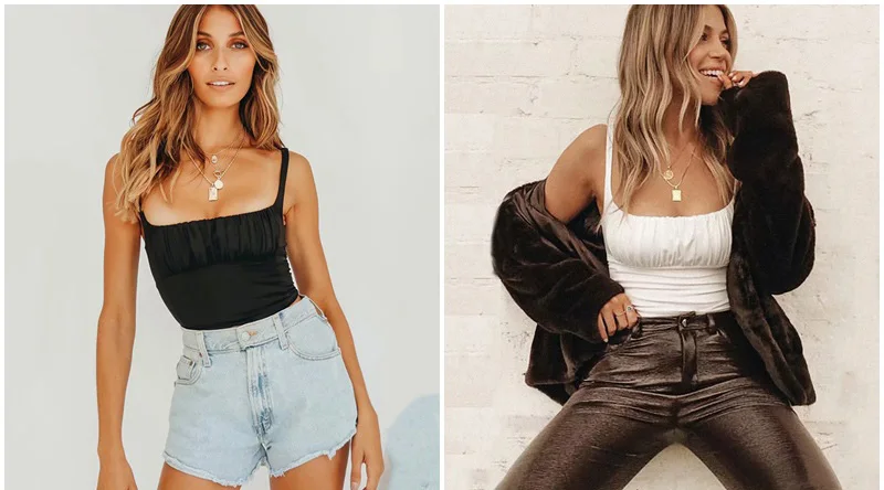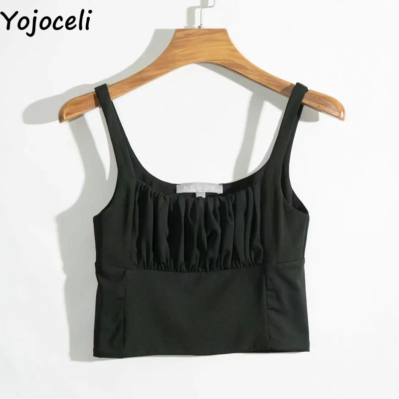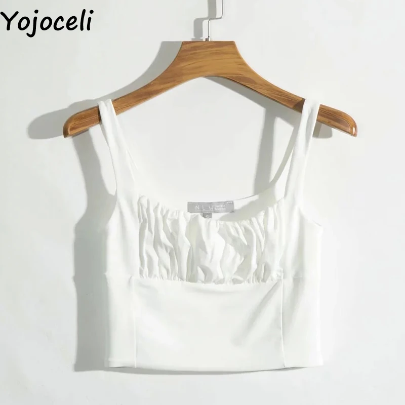 Женский плиссированный топ Yojoceli, короткий топ на бретельках, летний базовый пляжный Повседневный крутой укороченный топ, элегантные милые шикарные топы на бретелях