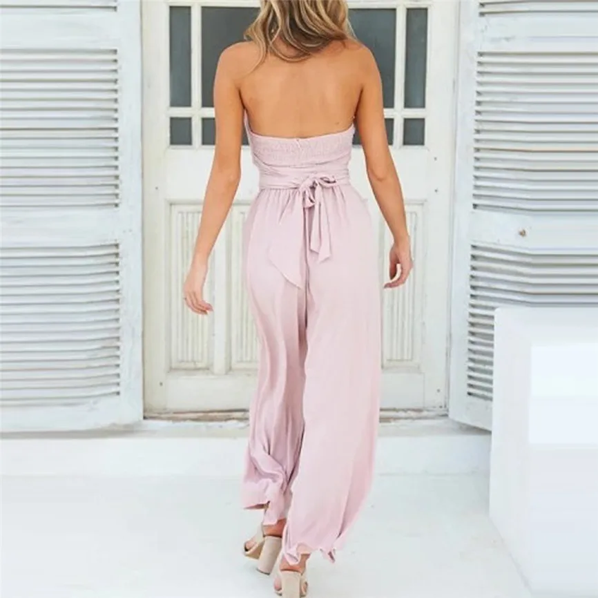 Fashion Women Holiday Wide Leg Pants Long Jumpsuit Backless Strappy Playsuit