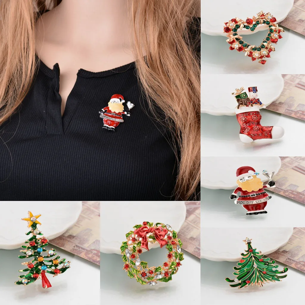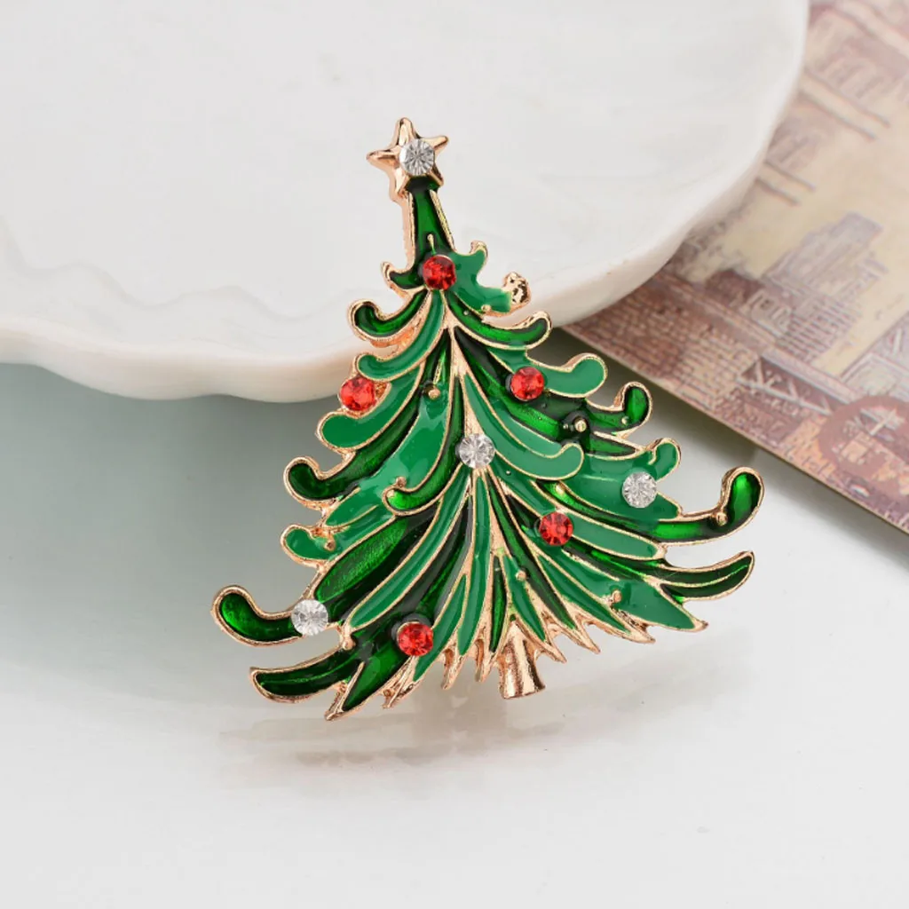С рисунком рождественской елки в виде снеговика Колокольчик брошь с кристаллом Санта Клаус рождественские вечерние подарки
