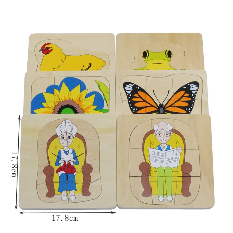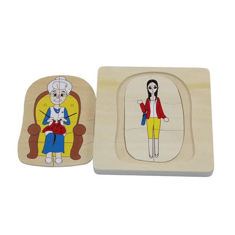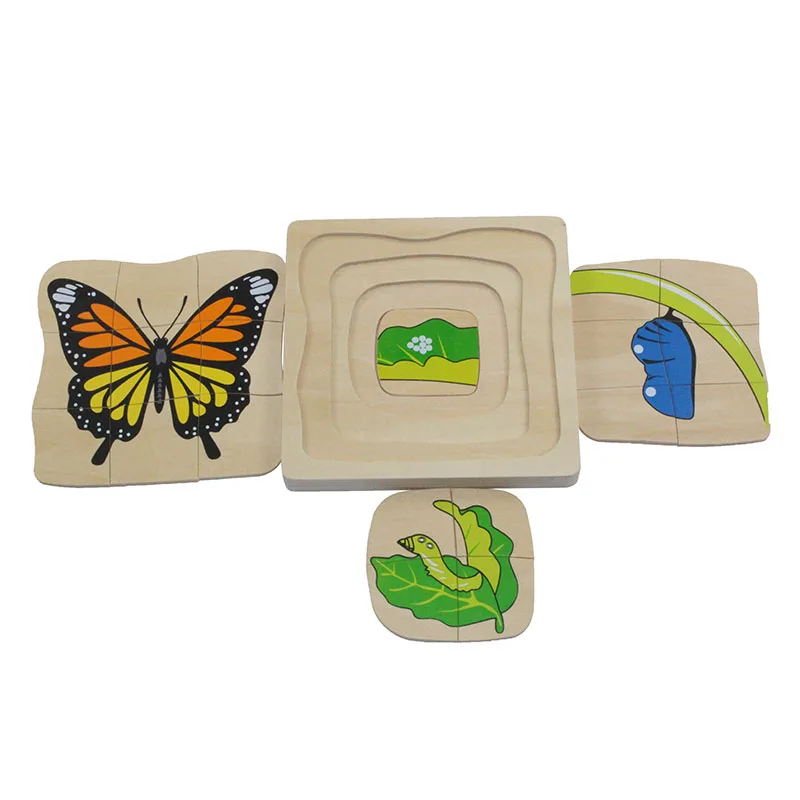 Монтессори игрушки наука и культура Обучающие игрушки Фигурки, животные, растения многослойные деревянные головоломки Дошкольное образование игрушки