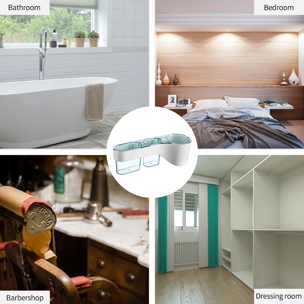 Держатель для фена и чашка, кроме того, удерживают аксессуары для ванной комнаты, такие как зубная щетка, расческа, зубная паста, косметика, щетка для волос, а также очищают грязное пространство и приносят вам чистую и аккуратную ванную комнату. Фен-органайзер с гладкой кромкой защищает вас от повреждений, предотвращает выскальзывание фена. Настенная установка подходит для любого типа стен, подходит для спальни, ванной комнаты, туалета или любых мест, которые вам нужны.