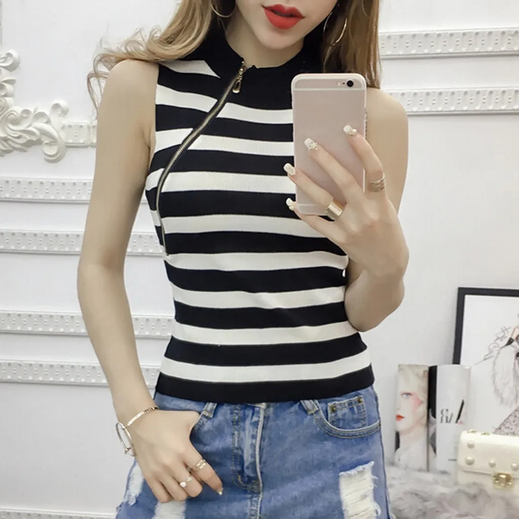 Особенности: повседневный, без рукавов, с круглым вырезом, полосатый жилет, женские топы, осень и весна.