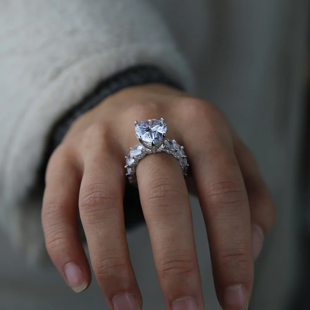 Роскошные Большие капли воды CZ Циркон Кольца для женщин Свадебные обручальные ювелирные изделия с квадратным камнем Круглый Серебряный цвет кольцо Bague R185