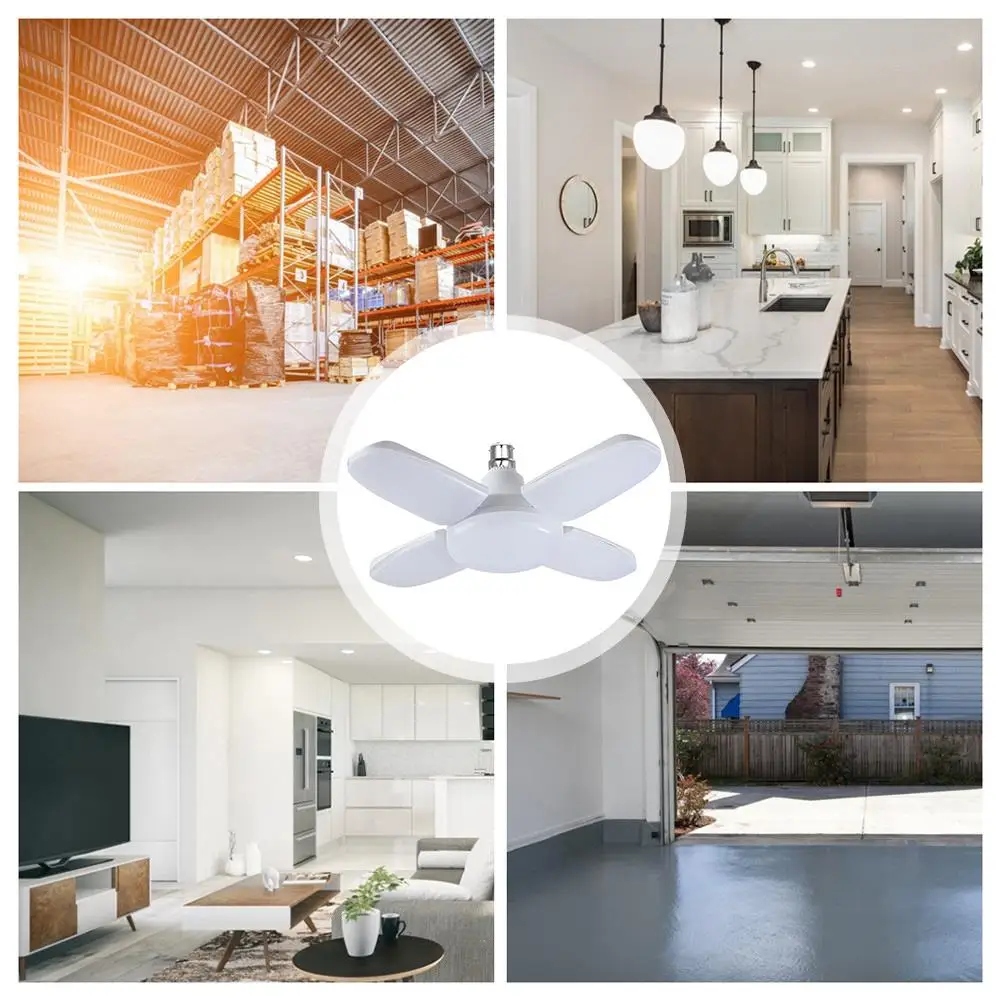 B22 60W 2835LED светильник для гаража с 4 регулируемыми панелями Складная Лампа для гаража AC120V-265V IP54 6000K 3000K высокий светильник для дома